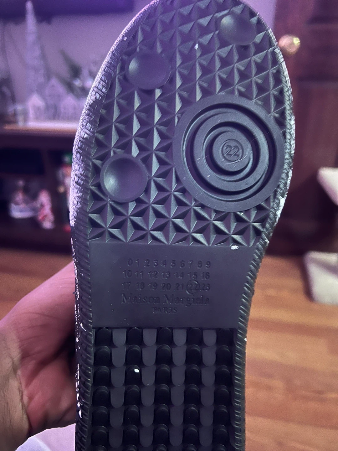 Selling a pair of Maison Margiela Replica sneakers! They are a size 11The sneakers feature a unique black and white design.