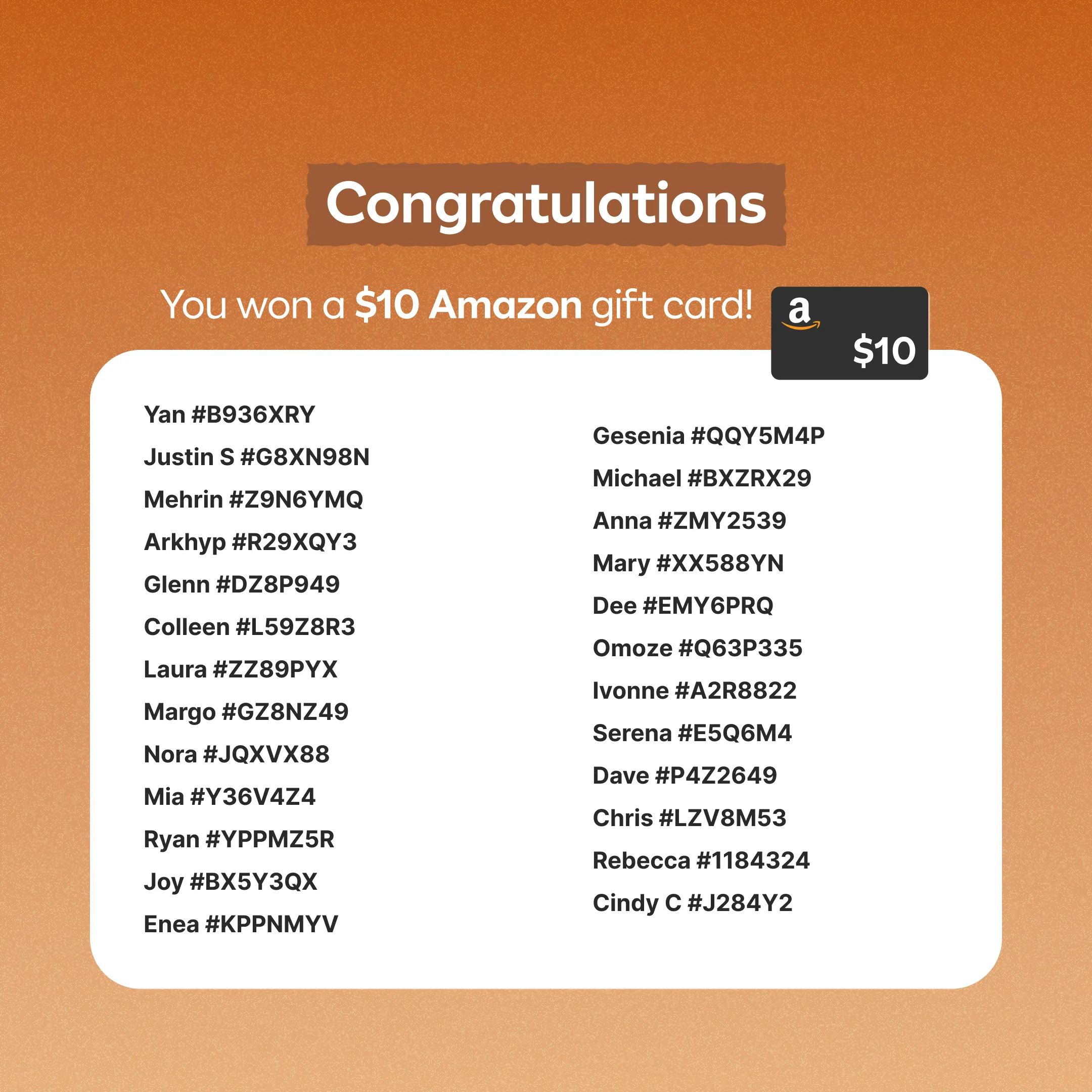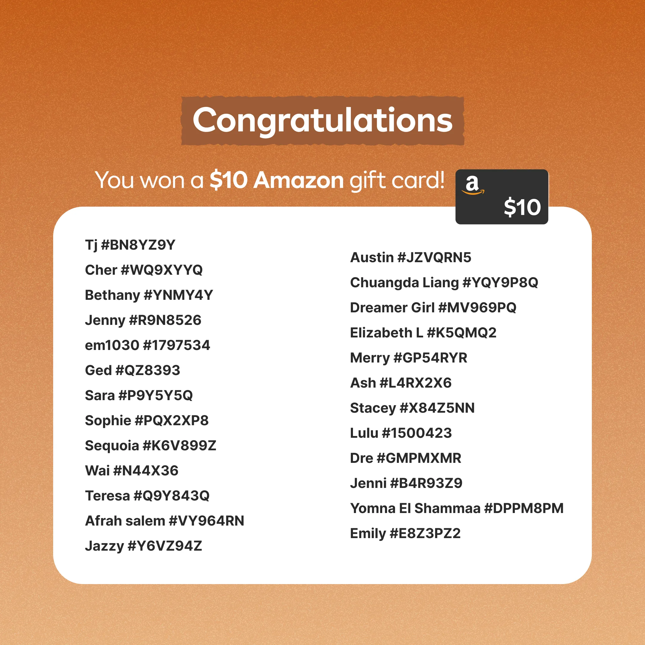 Now, for the moment you’ve all been waiting for... the 100 winners + the 1 grand prize winner have been revealed 🥳