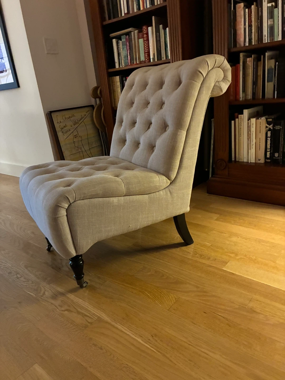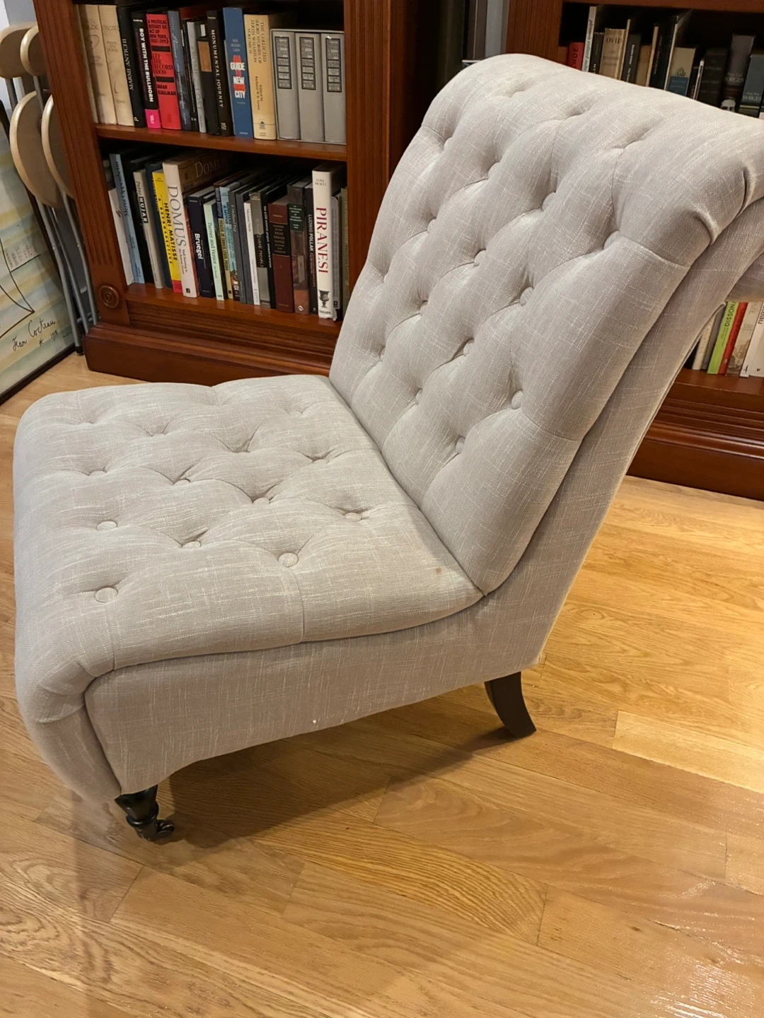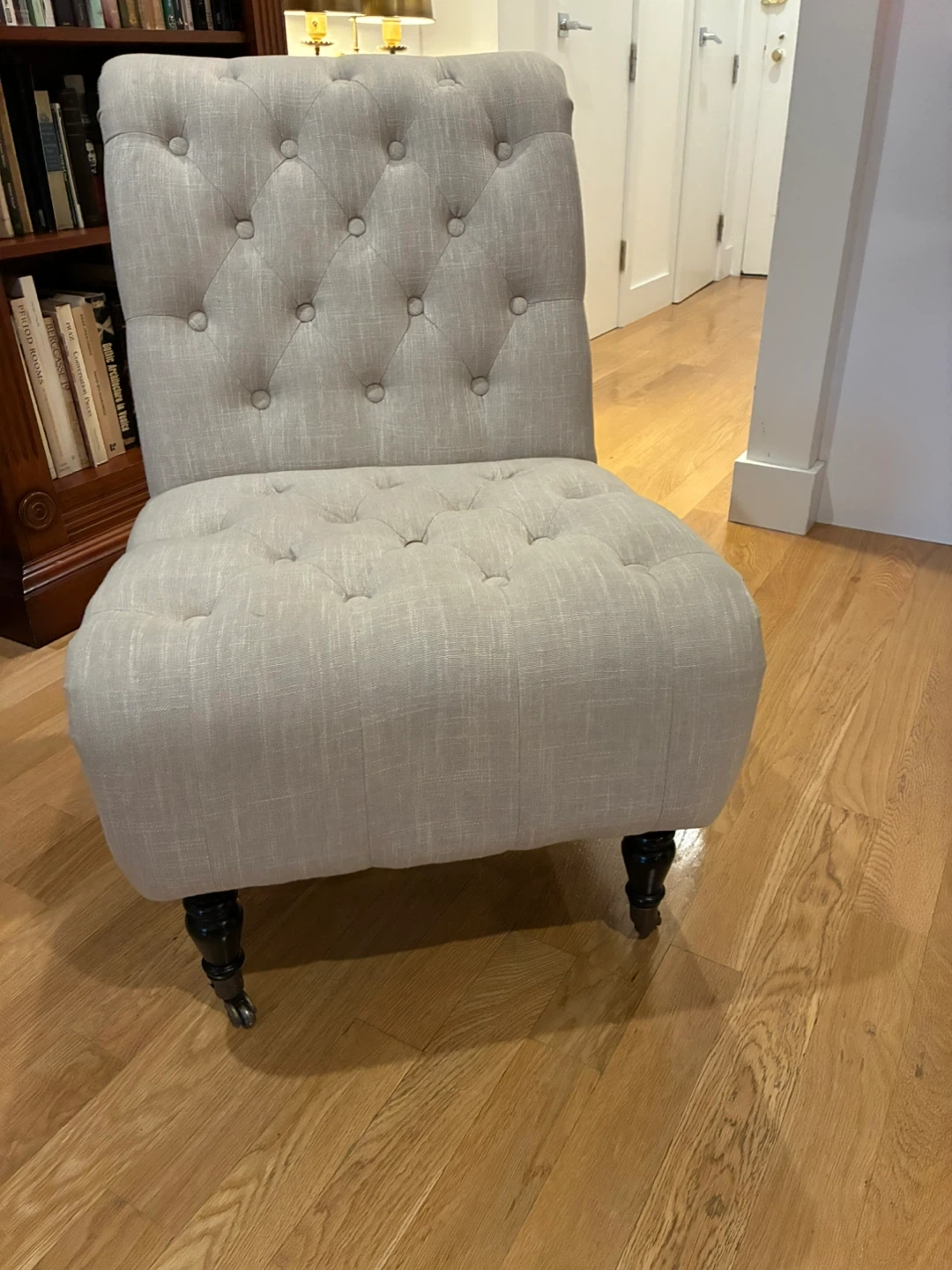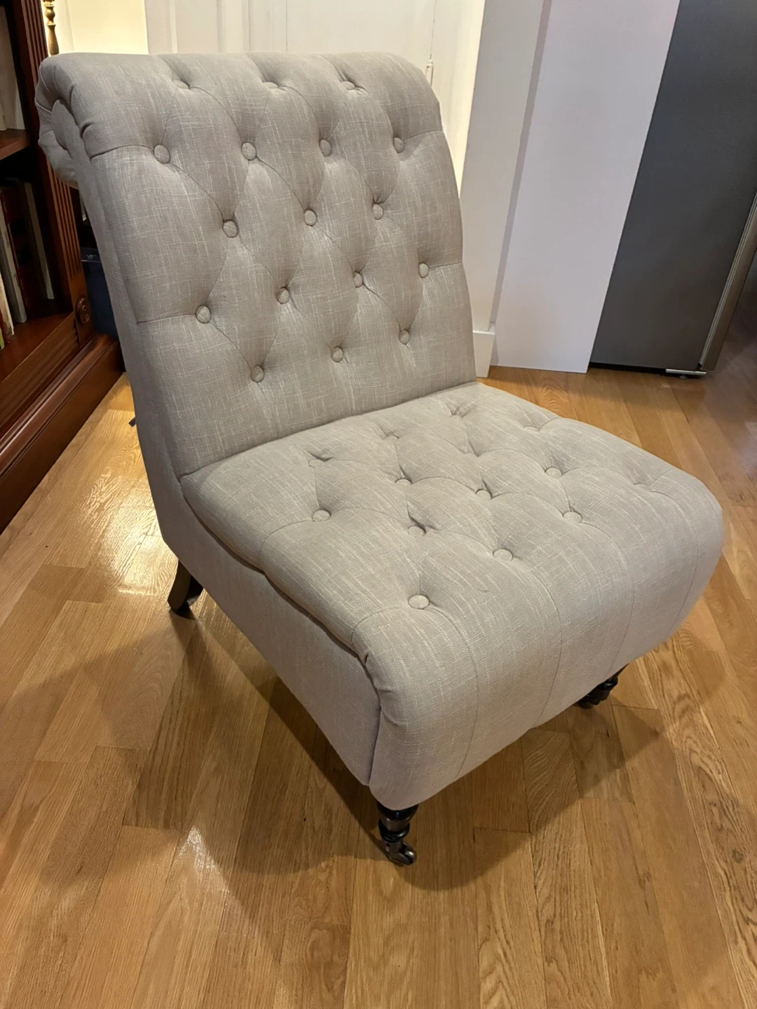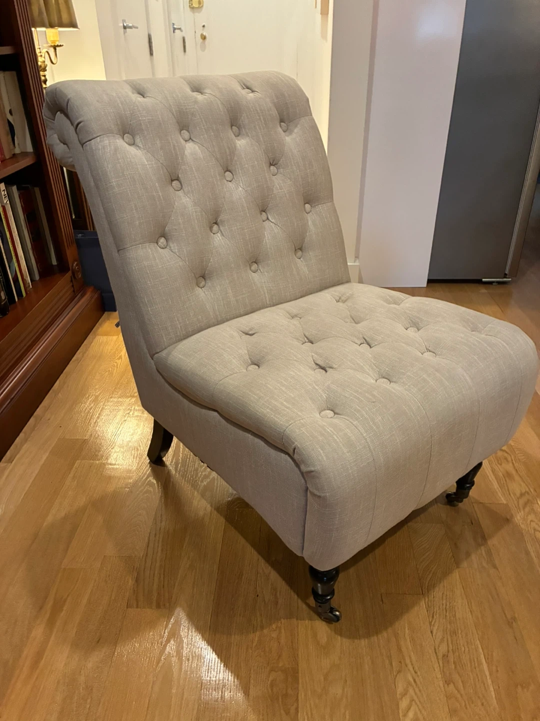 Buy & SellTufted Accent Chair - BeigeTufted Accent Chair - Beige$38Selling a tufted accent chair in beige! The chair features a classic tufted design and a comfortable seat. Perfect for small spacesConditionOkayDimensionsW23 x D 26 x H 34 (Seat)17 WHERE TO MEETCheck LocationView MapSELLERverifiedLeoLenox Hill801 review2 chats·8 favorites·233 viewsSEND CHAT TO SELLERHi Leo! I’m interested in your listing.Hi Leo! I’m interested in your listing.Get the Karrot app to chatSign In to chat