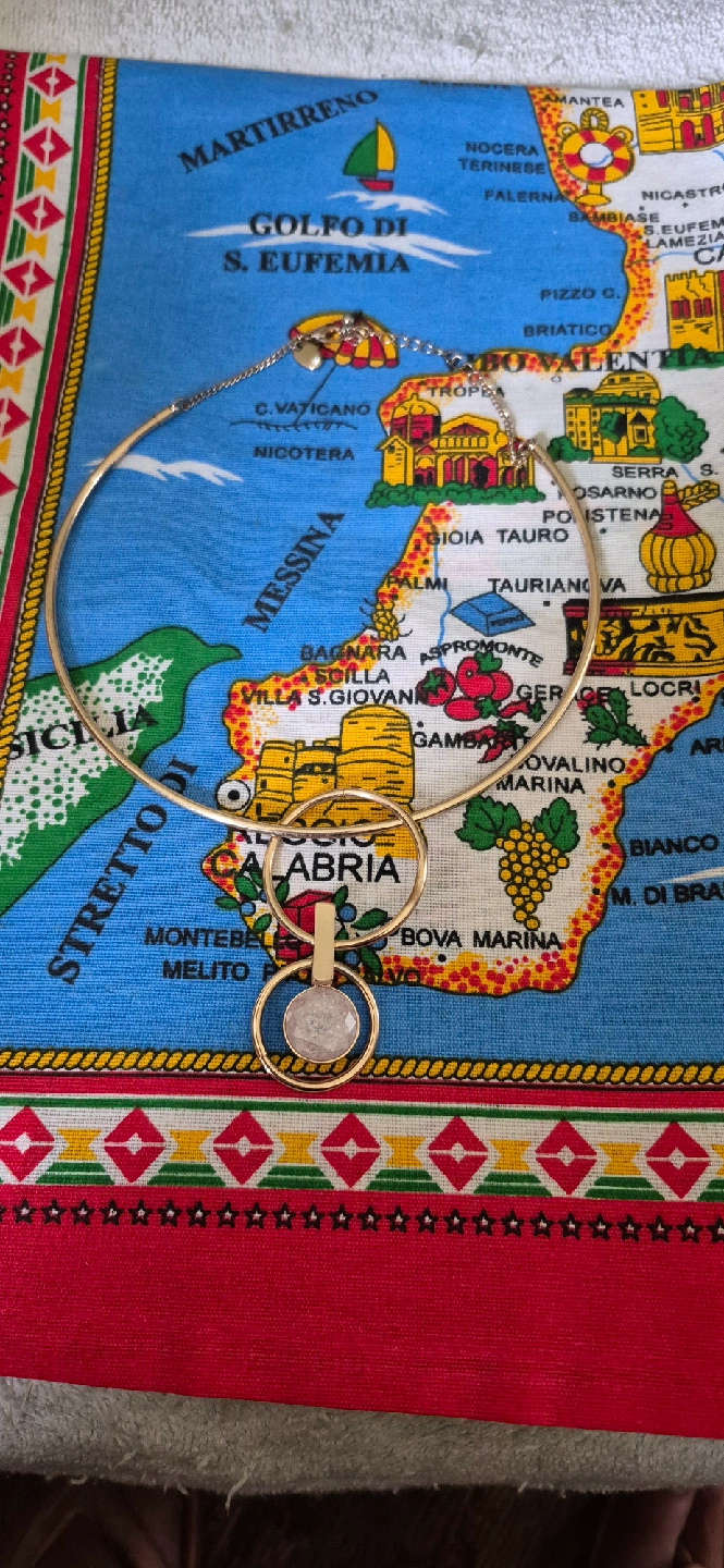 stylish gold-tone statement necklace. It features a choker-style design with circular elements and a pendant. Perfect for adding a chic touch to any outfit!