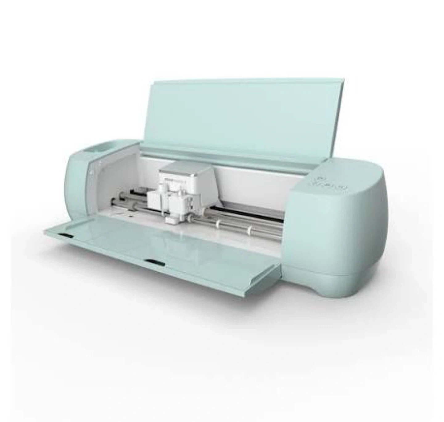 This is a Cricut Explore 3 cutting machine in a lovely mint green colour. It's designed for precise cutting of various materials. This machine is perfect for crafters and DIY enthusiasts looking to create custom designs. It's a versatile tool for projects big and small!