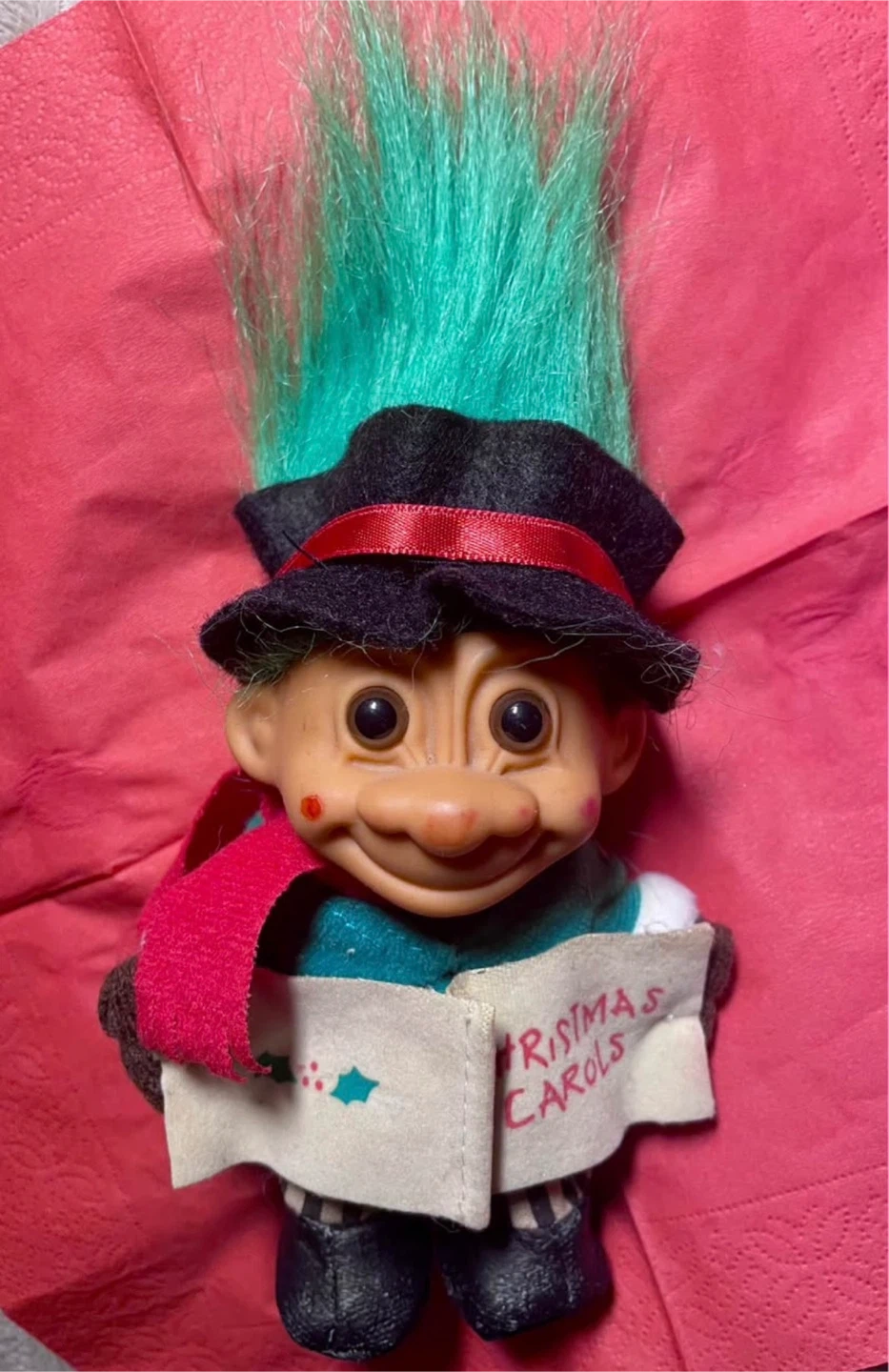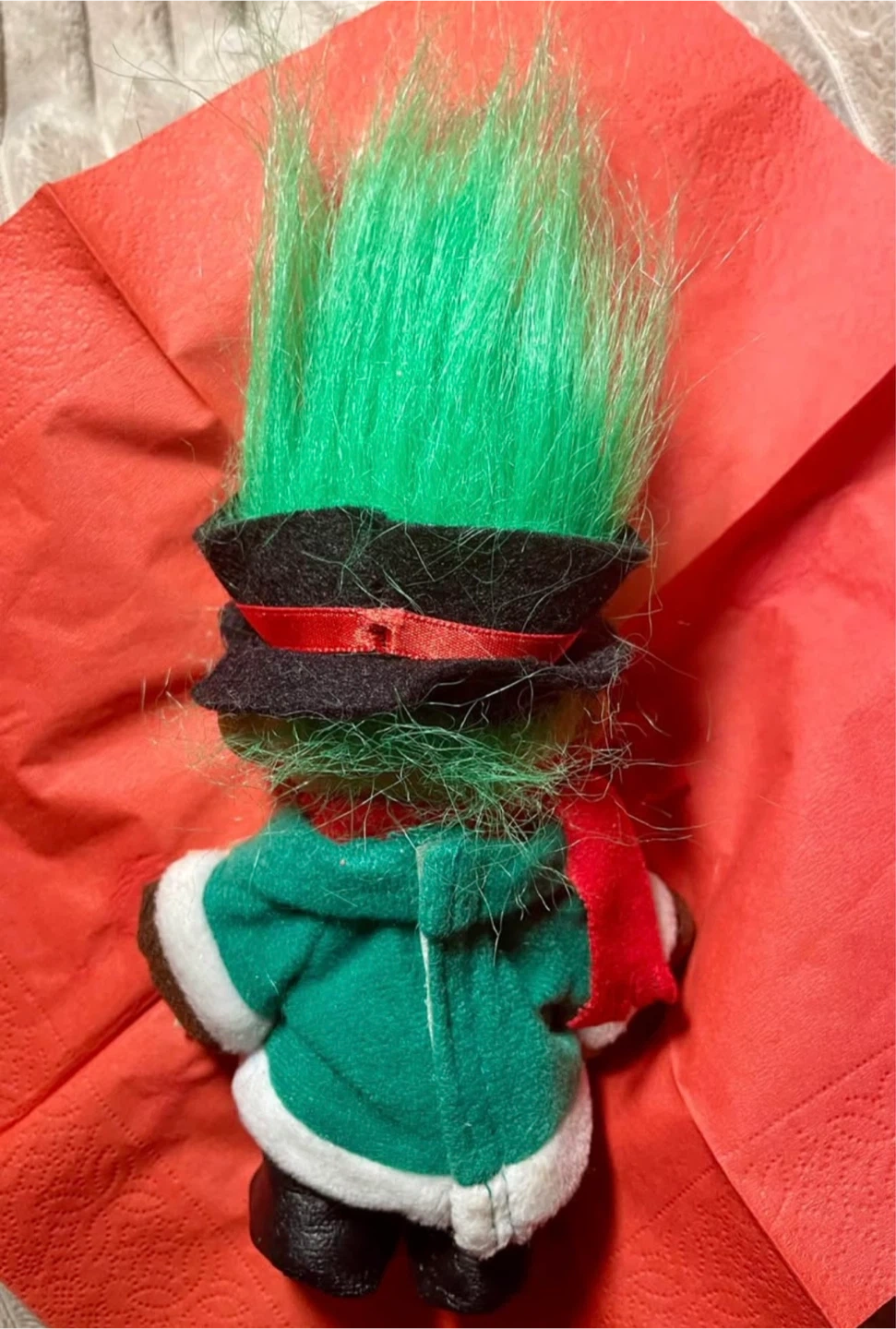 Vintage Russ Bernie Christmas Carol Troll Doll with Green Hair andTop Hat
