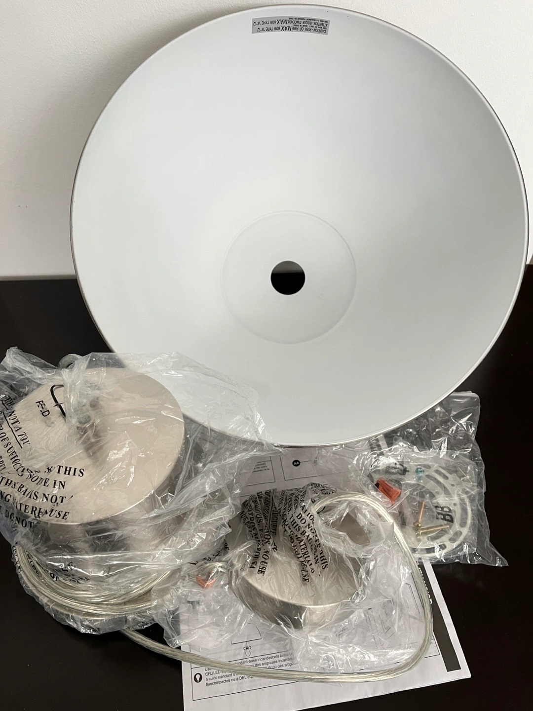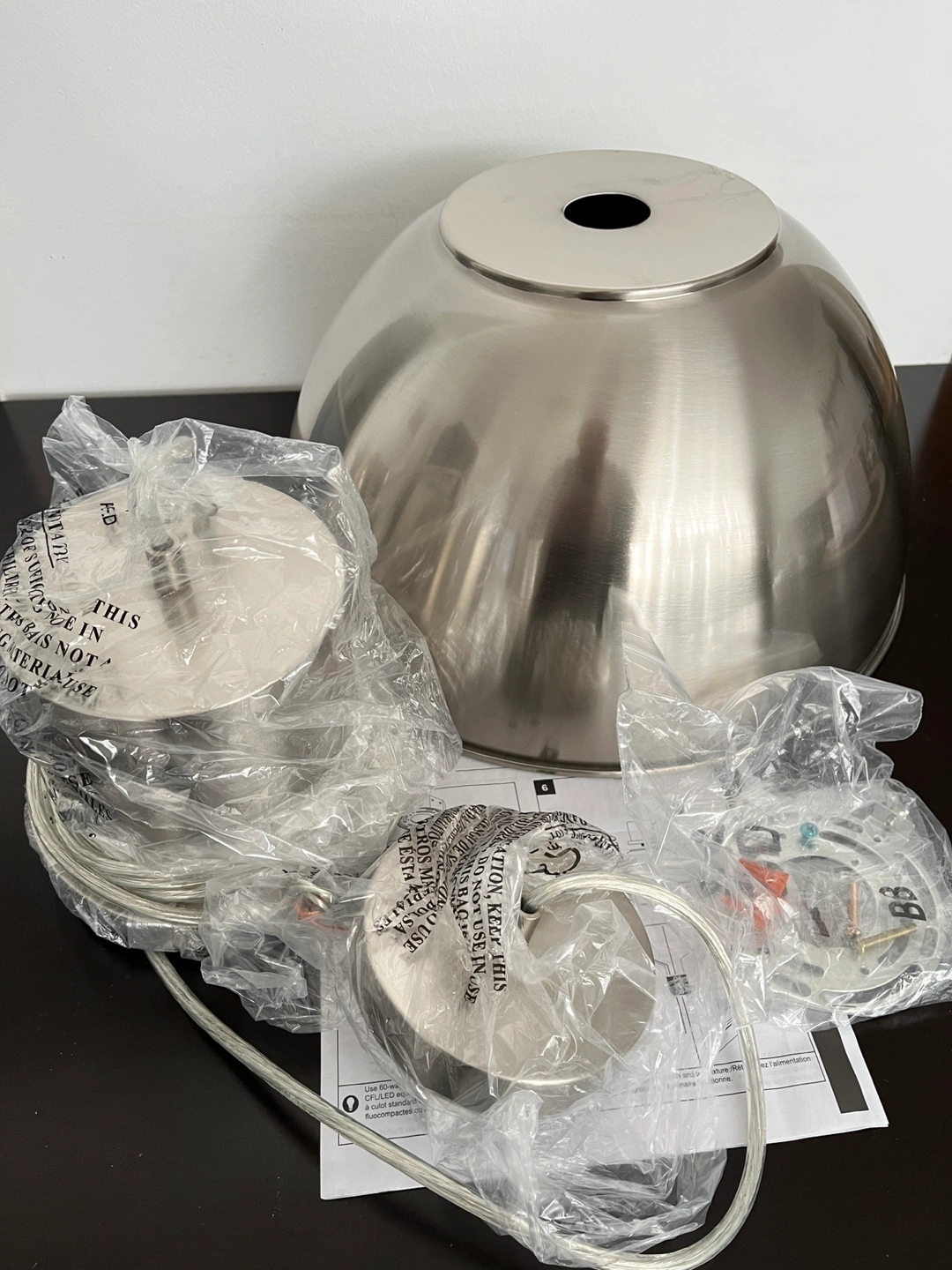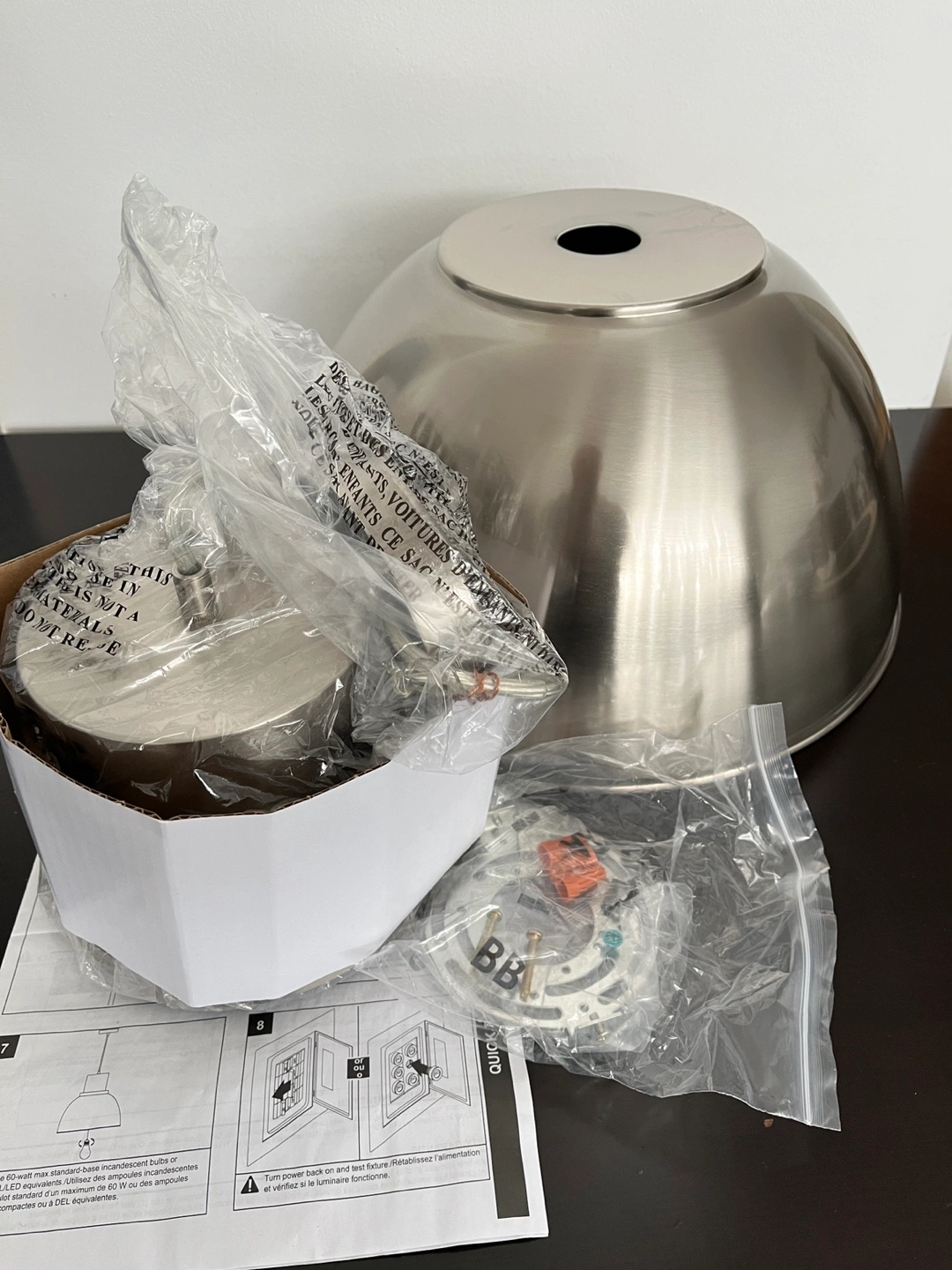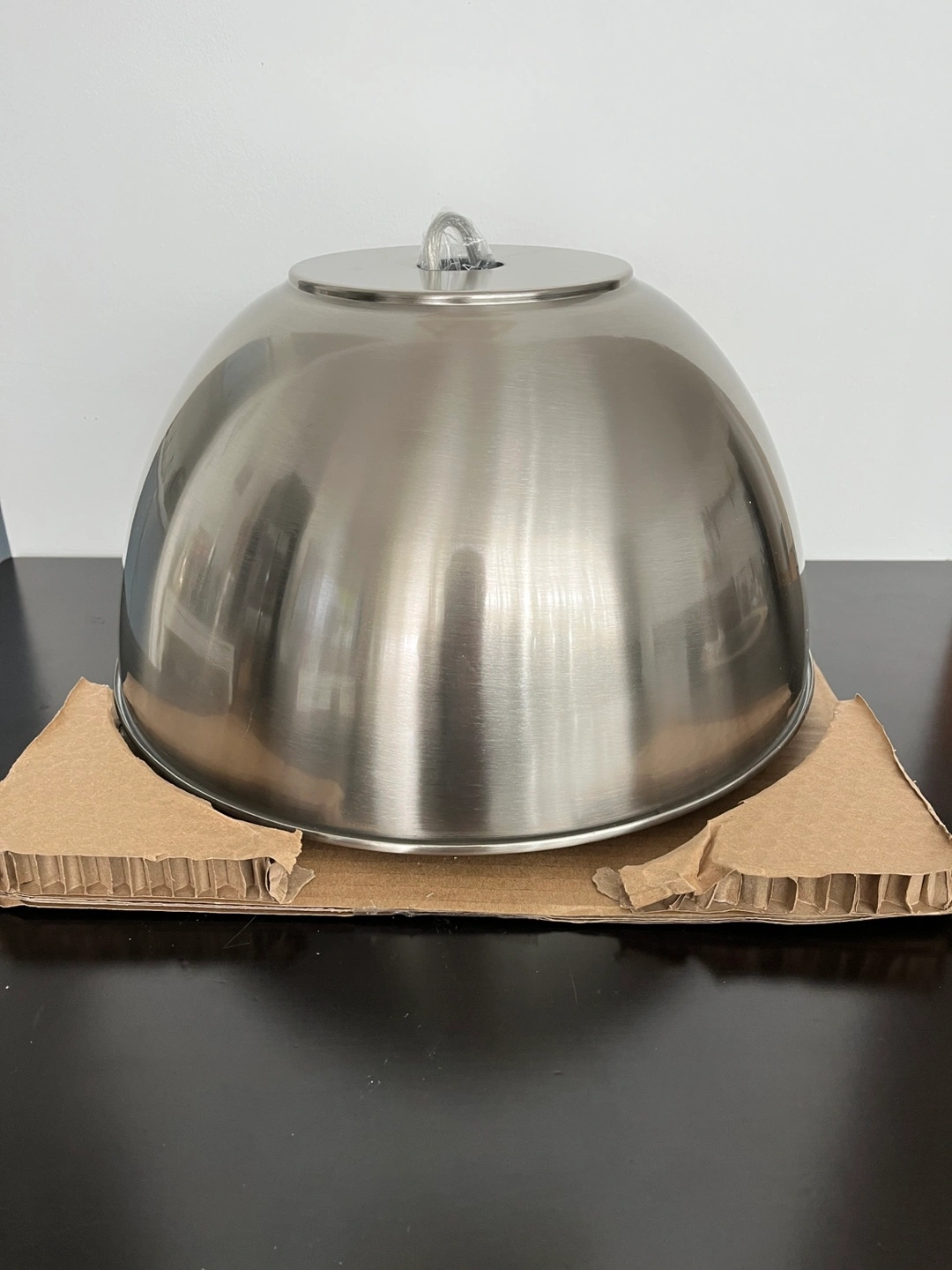 Light up your space with this 1-light pendant light fixture from Project Source. Made of steel, it features a dome shape shade and its brushed nickel finish complements many decor styles.New without original packaging with some traces of storage.