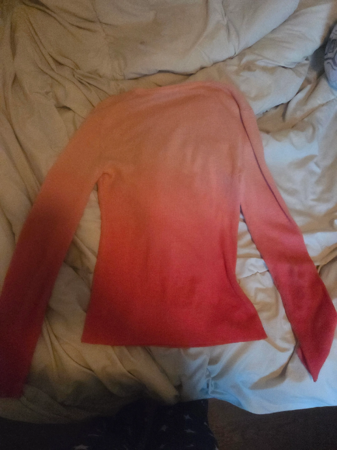 Here's a Michael Kors ombre sweater in size small! The colours fade beautifully from a light peach to a vibrant red. It's in great condition and ready for a new home