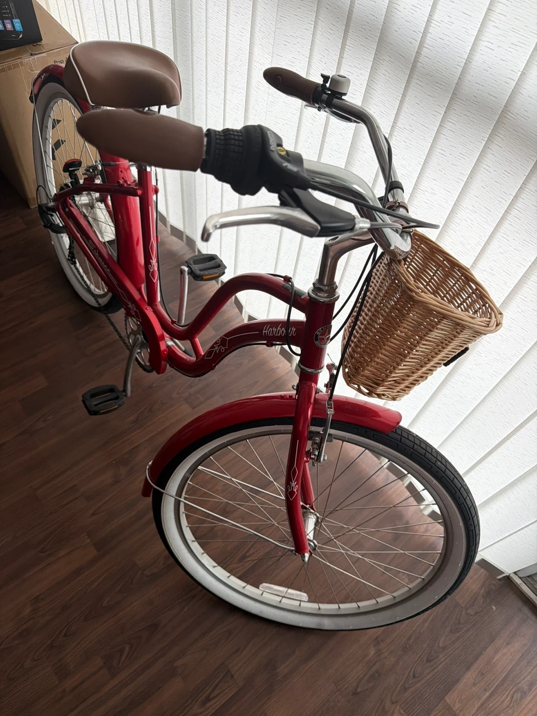 Selling a Schwinn Harbour women's cruiser bike in red! It's a stylish and comfortable ride for leisurely trips around the neighbourhood. Features a classic design and a convenient basket for carrying your essentials. Only used on 3 short trips. Like new!