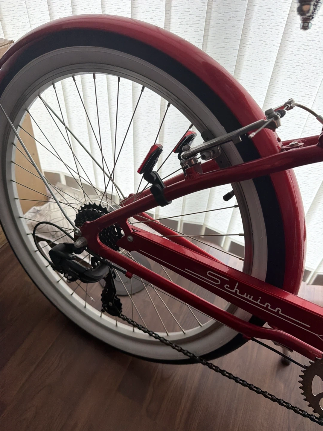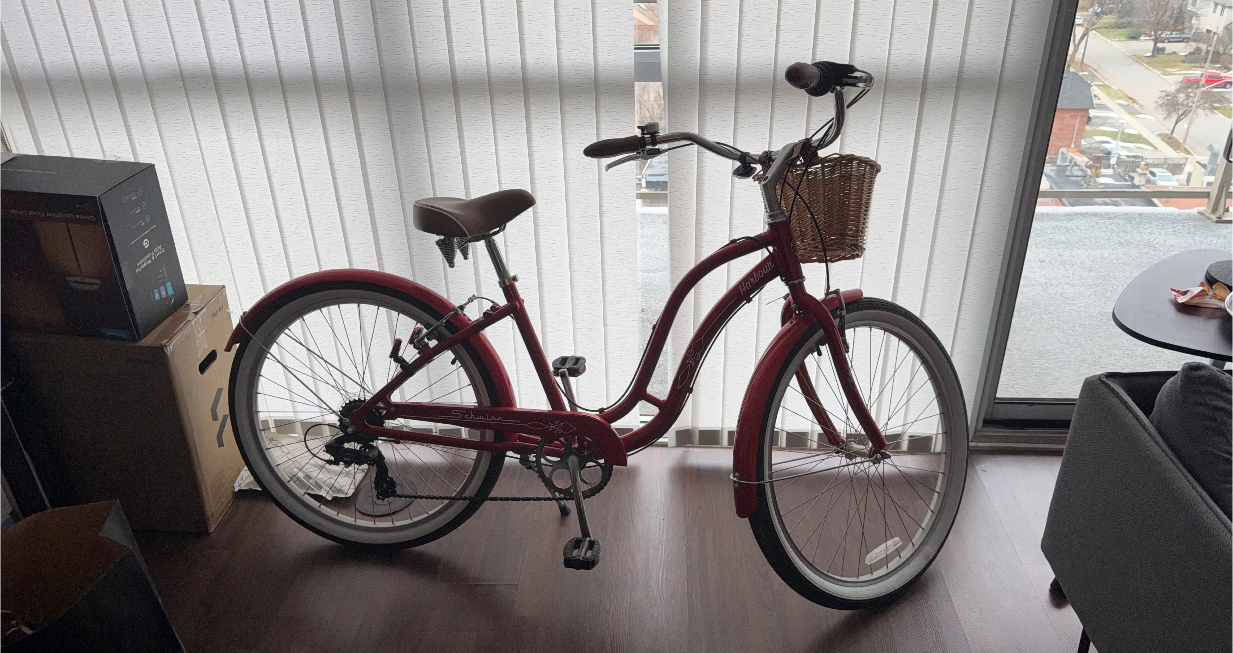 Selling a Schwinn Harbour women's cruiser bike in red! It's a stylish and comfortable ride for leisurely trips around the neighbourhood. Features a classic design and a convenient basket for carrying your essentials. Only used on 3 short trips. Like new!