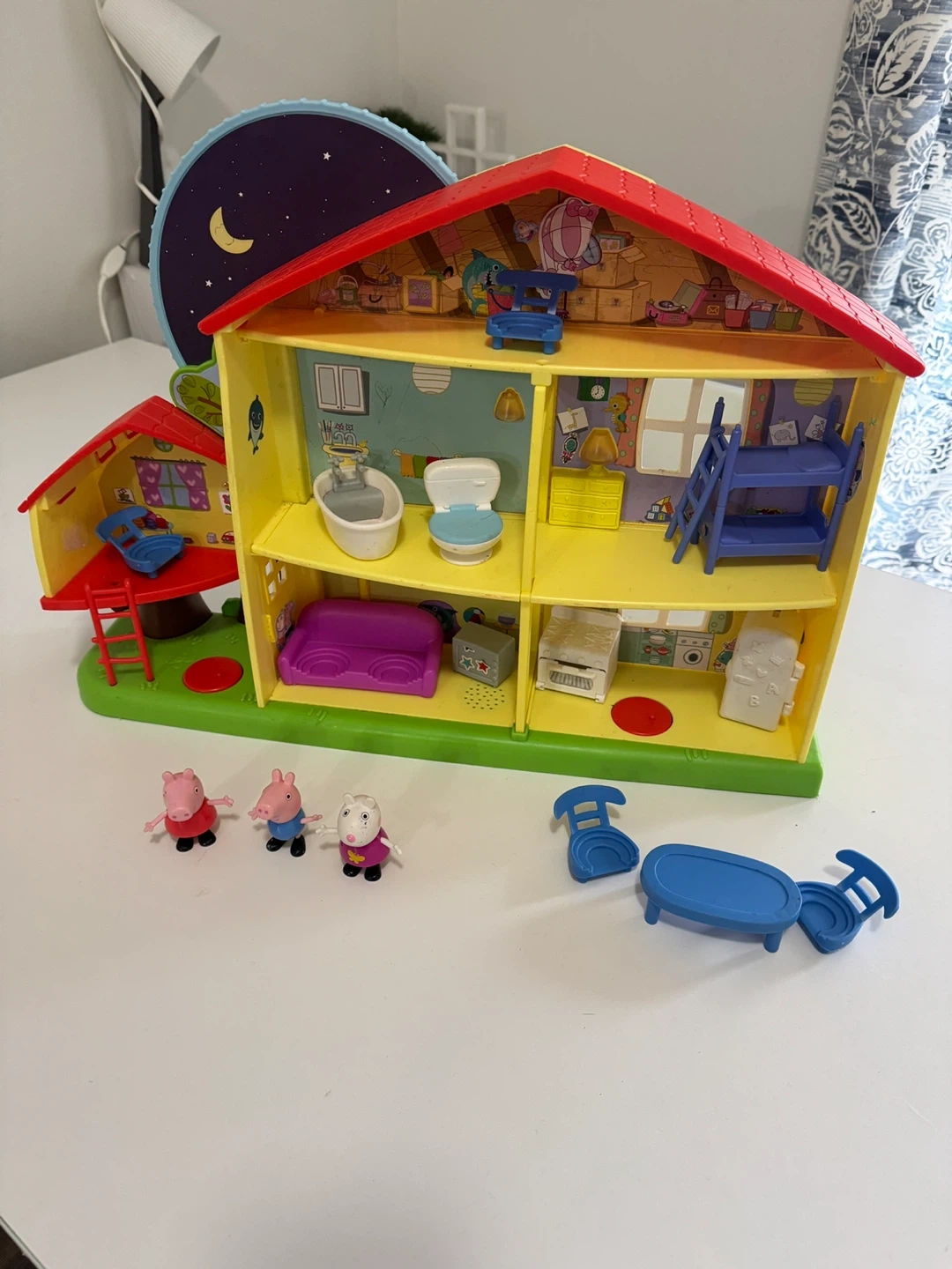 This Peppa Pig playhouse comes with figures, furniture, and accessories. It's a fun toy for imaginative play. Great for little fans of the show!