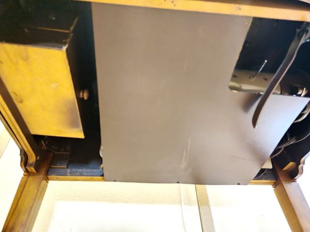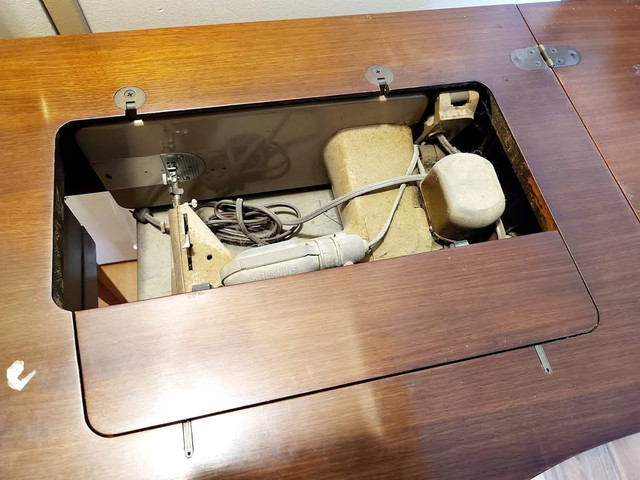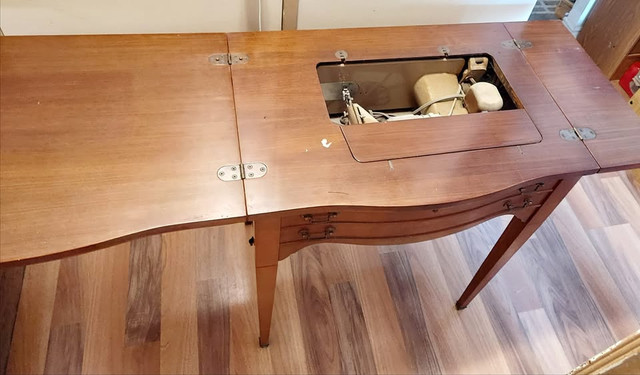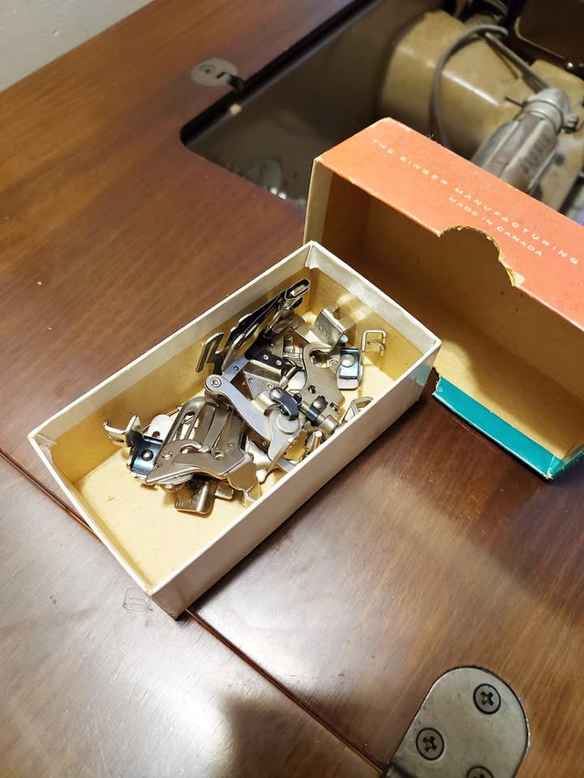 This Singer sewing machine is in working condition and is from the early 60's. It could use some TLC as shown in the photo but the parts are there and the machine runs (was being used by one of my kids). It has been siting covered for some time now and deserves to have a new home where it will be restored to its former glory and appreciated. This has the Singer trademark and another plaque that says 191J. The piece is heavy and you will need an appropriate vehicle to transport it. Pickup is at Morningside and Lawrence Ave.