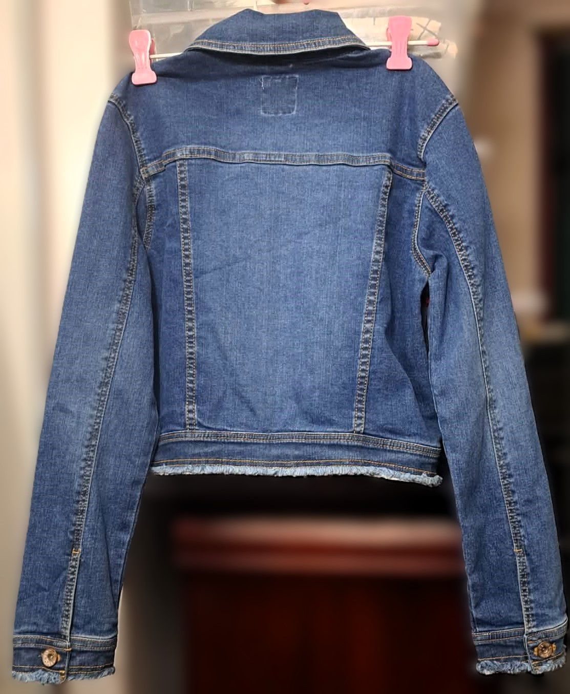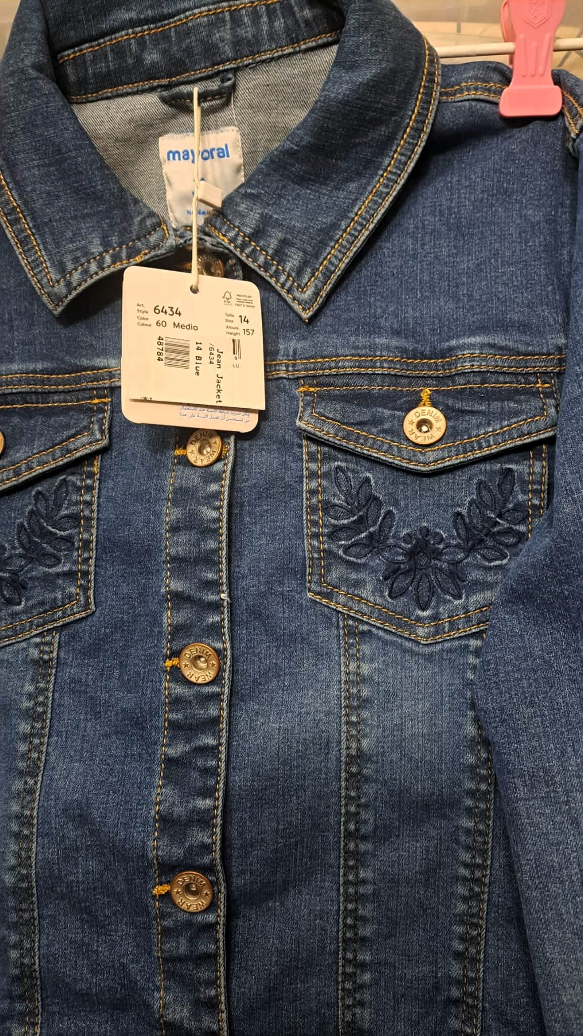 Brand New Teens Trendy Long Sleeve Denim Jean Jacket Button Down with Embroidered Pockets Size 14. This Brand New Teen Trendy Long Sleeve Denim Jean Jacket Button Down with Embroidered Pockets is a streetwear staple that provides a contemporary, edgy vibe. Whether thrown over a simple tee or layered with a hoodie, this jacket is sure to make a bold statement. Spring Fall Fashion Teen Jacket. A teen size 14. For pick-up and serious inquiries only.