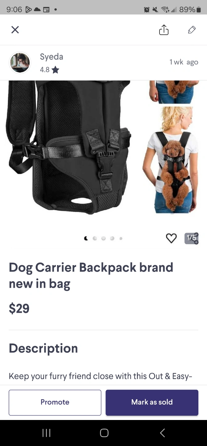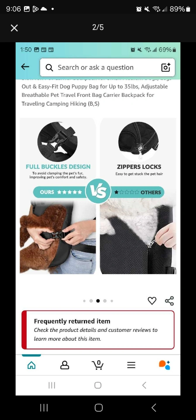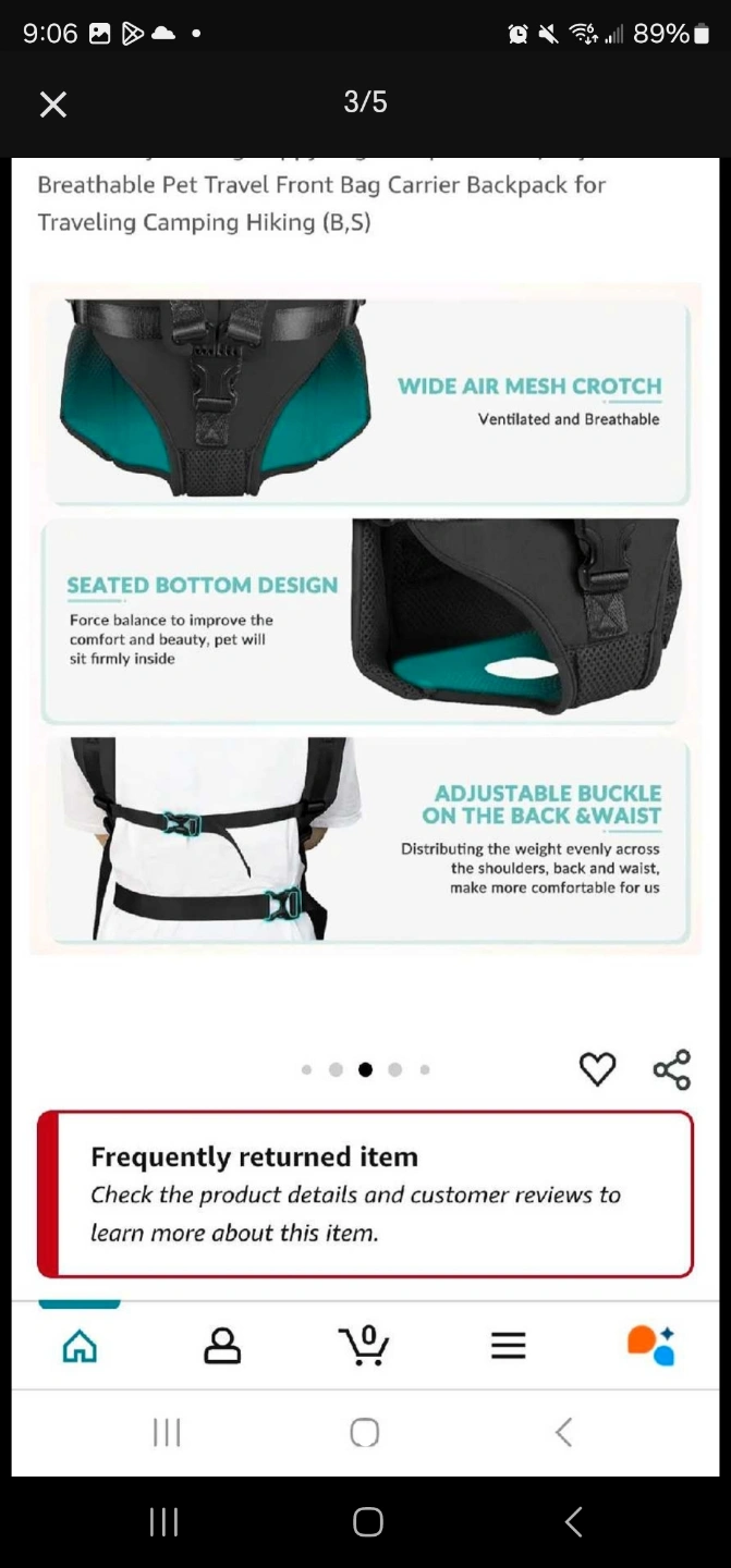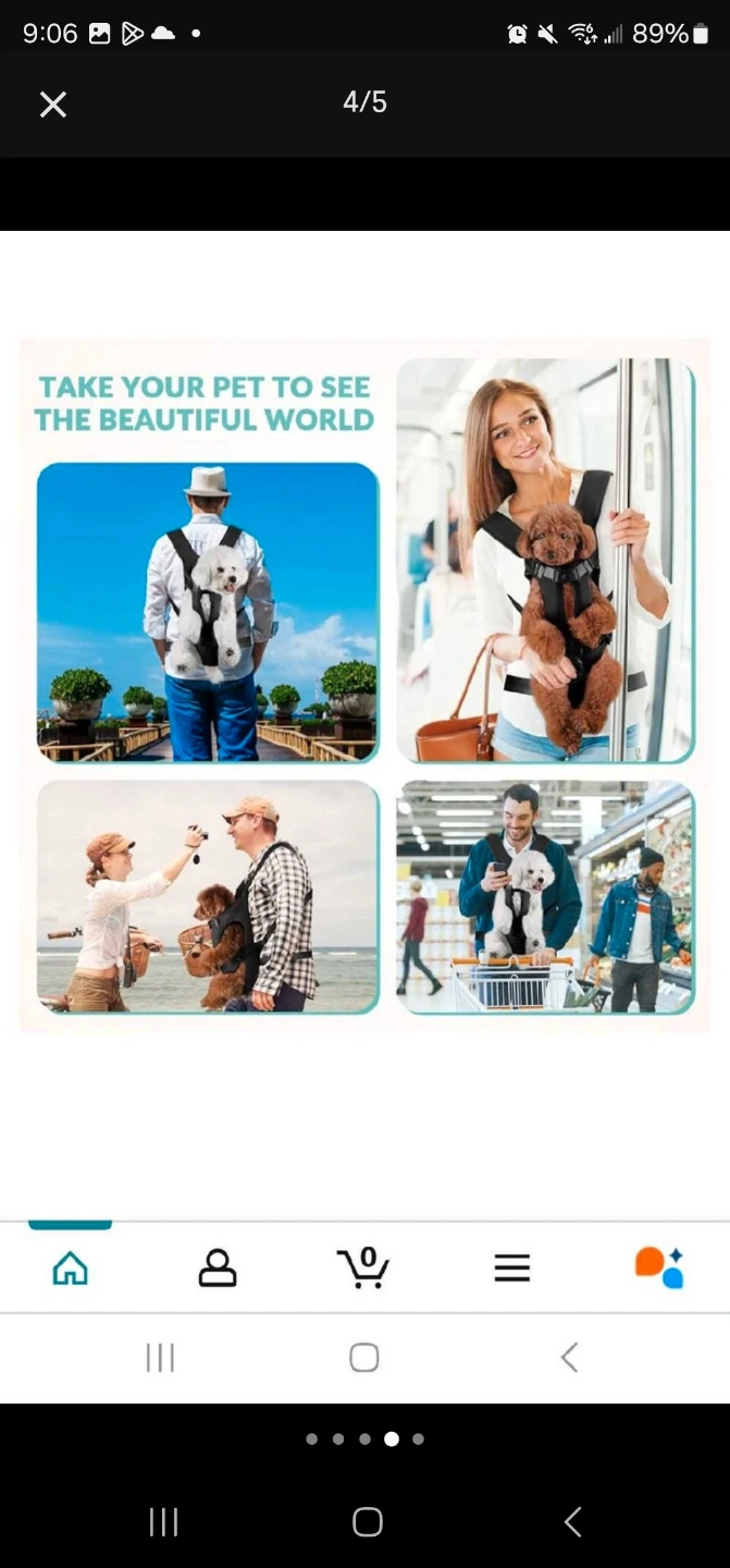 Adjustable breathable pet travel front bag. Carrier backpack for travelling, camping, and hiking. Suitable for dogs up to 35 lbs. Features full buckles, zipper locks, wide air mesh crotch, and seated bottom design. Brand new in bag.