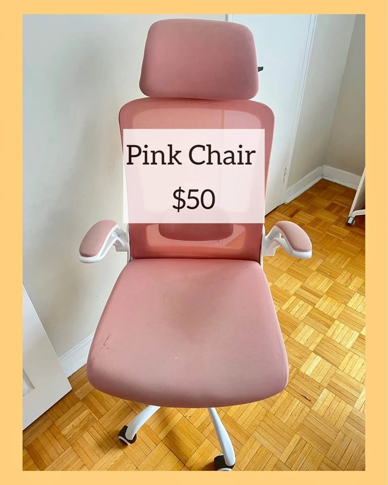 Buy & SellPink Ergonomic ChairPink Ergonomic Chair$50Regular wear and tear and discolouration but otherwise pretty good! Cash pickup only @666 Ontario StreetWHERE TO MEETCheck LocationView MapSELLERverifiedCeceN St. James Town16412 reviews0 chats·0 favorites·28 viewsSEND CHAT TO SELLERHi Cece! I’m interested in your listing.Hi Cece! I’m interested in your listing.Get the Karrot app to chatSign In to chat