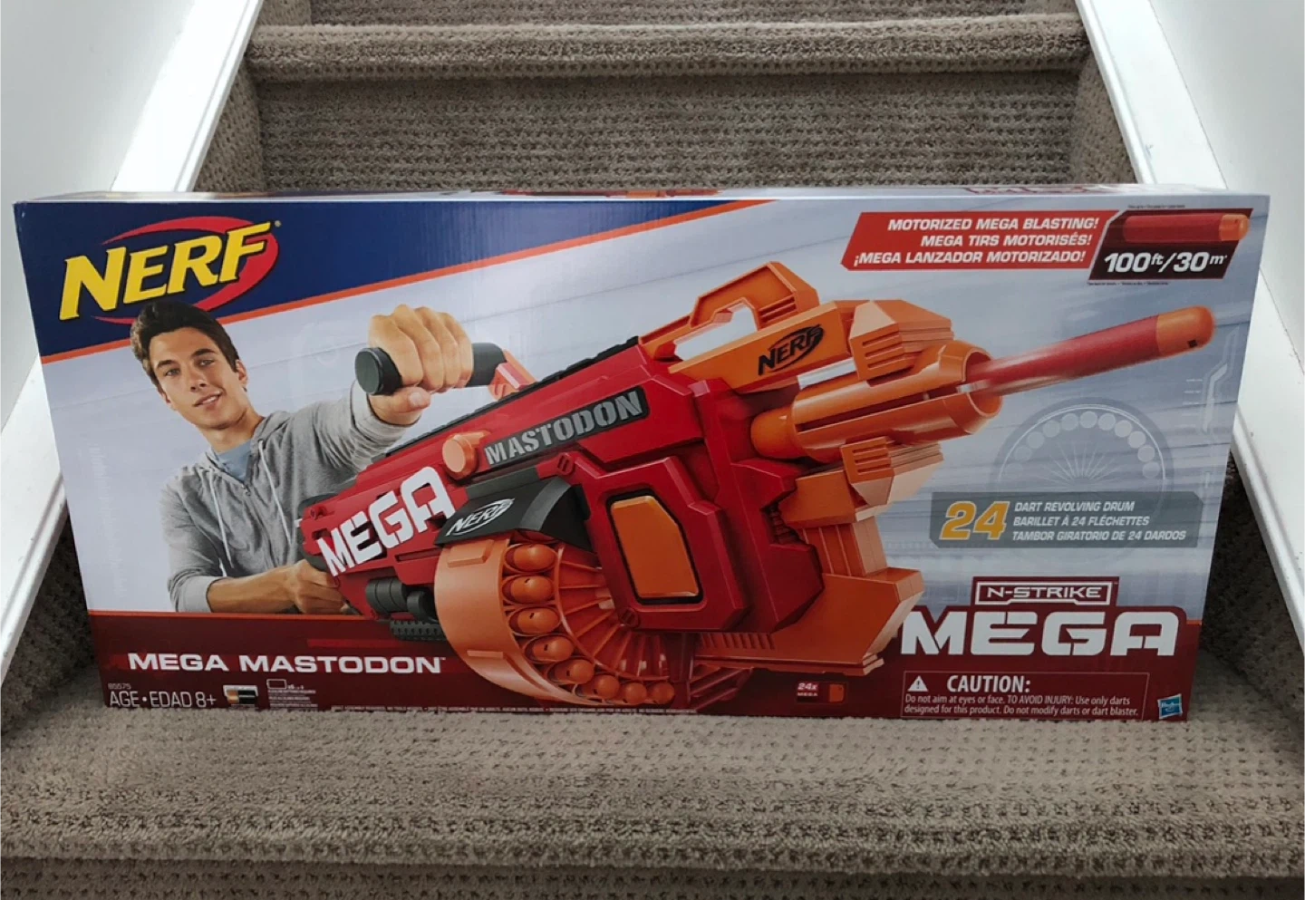 Selling a brand new, in-box Nerf N-Strike Mega Mastodon blaster! This motorized blaster features a revolving drum that holds 24 Mega darts. It's recommended for ages 8+. Get ready for some mega blasting fun!