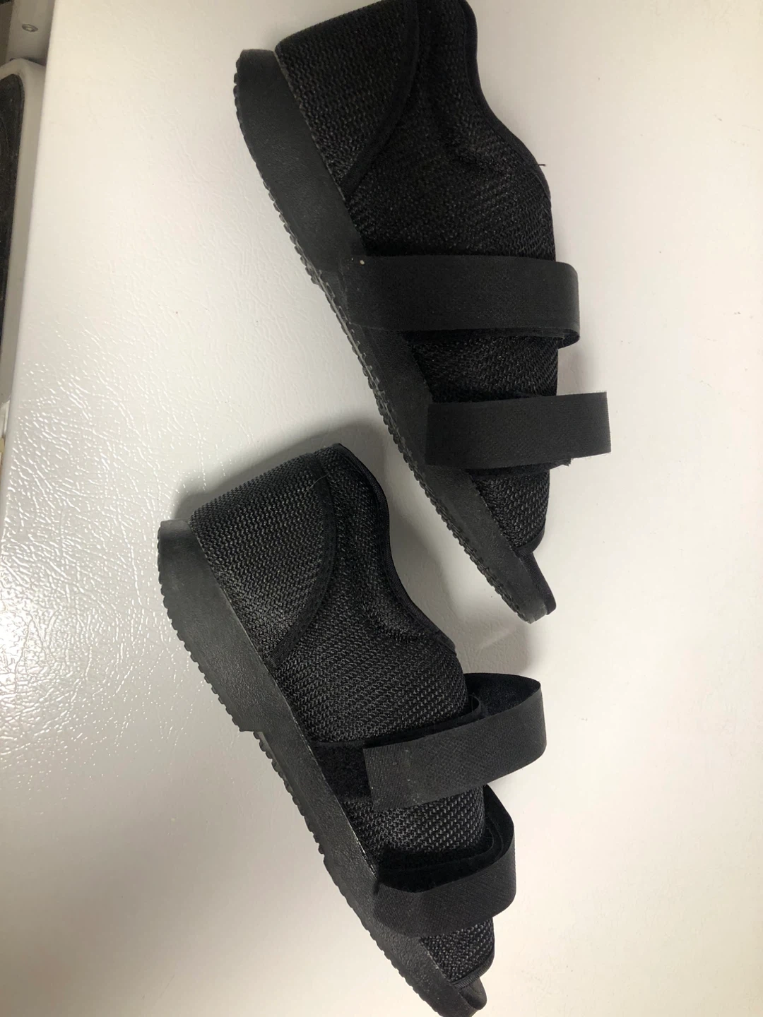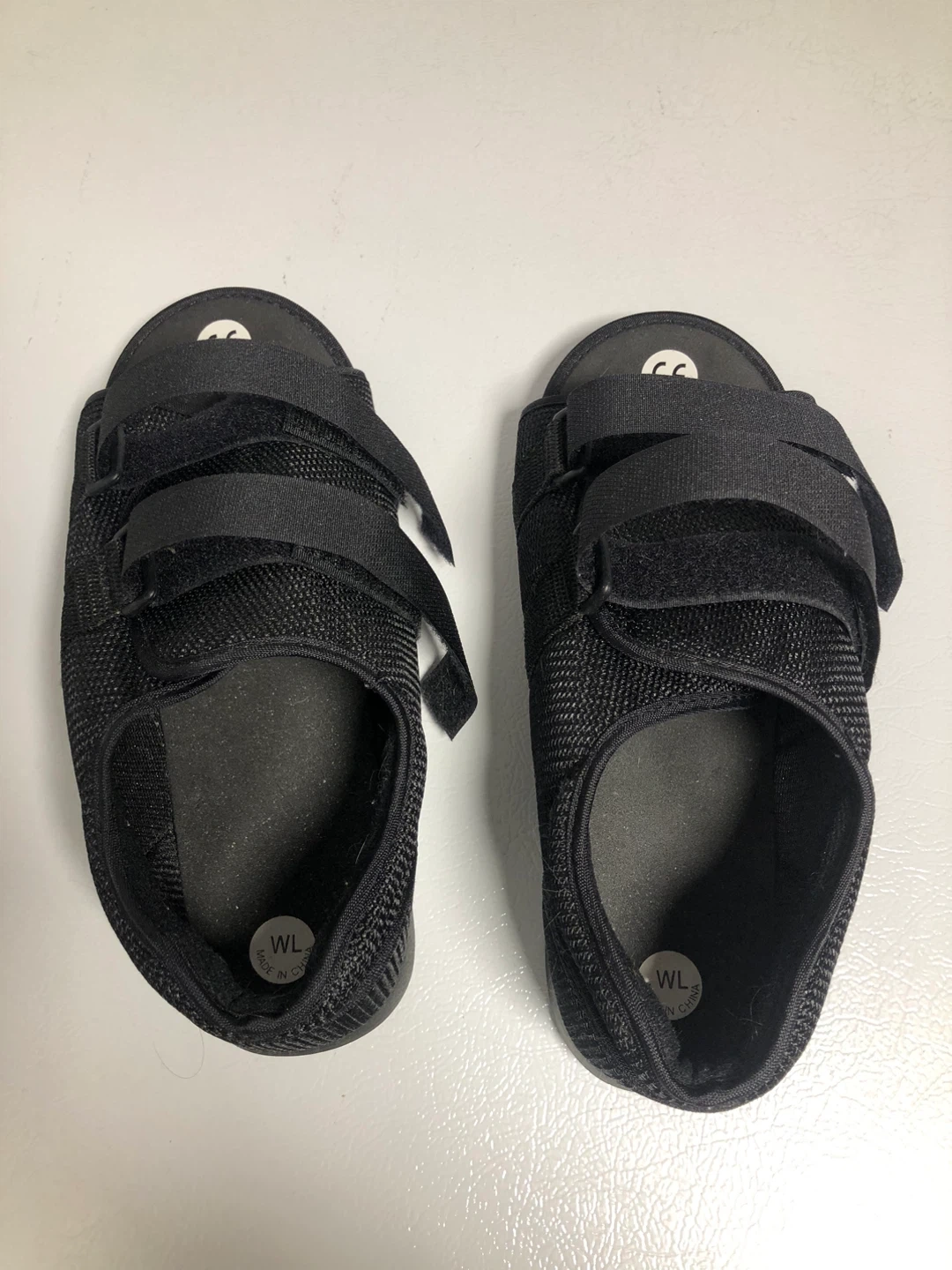 Selling a pair of WL post-op shoes in black. They are size WL and appear to be in good condition. Great for post-surgery recovery and foot protection.