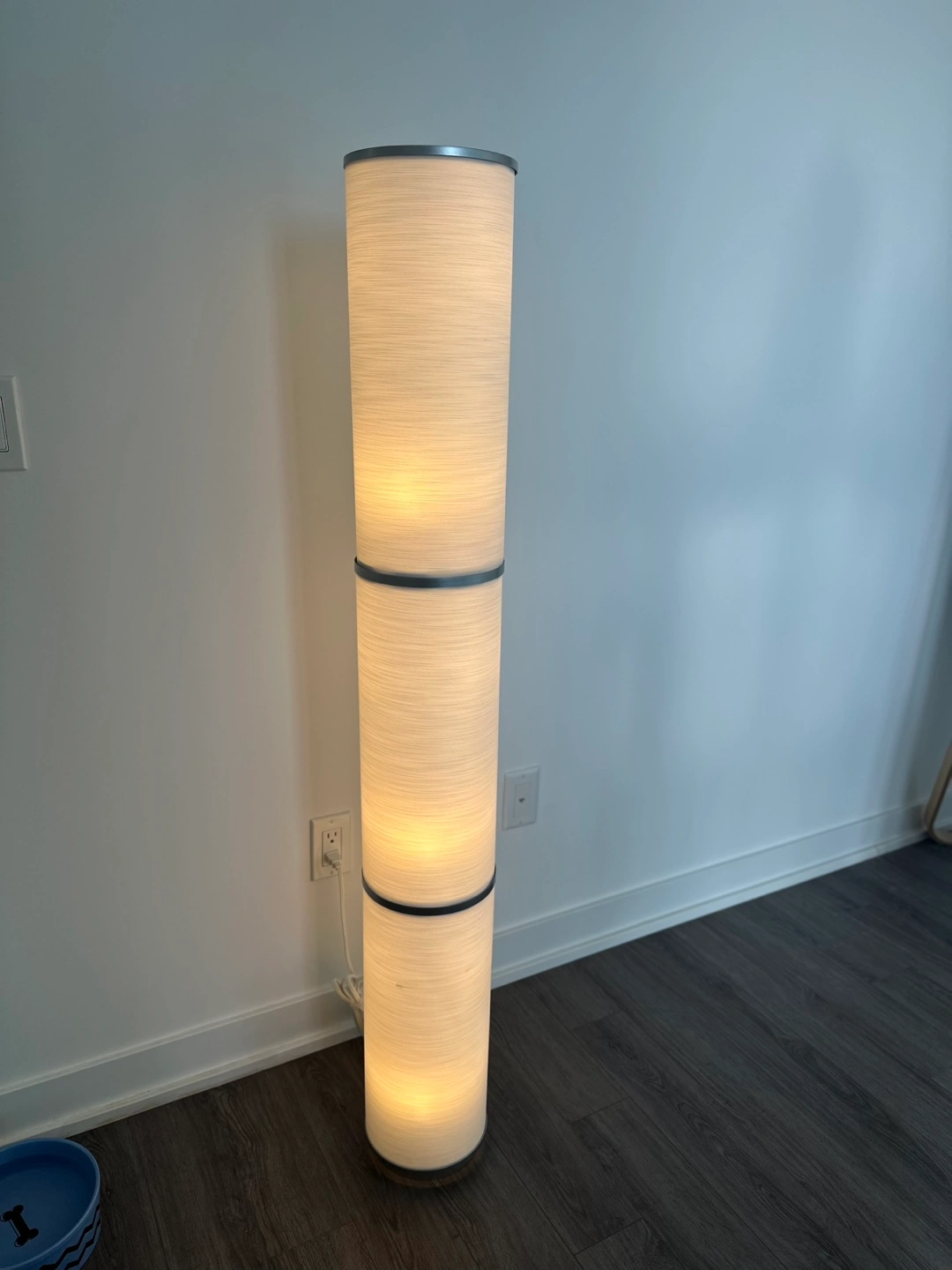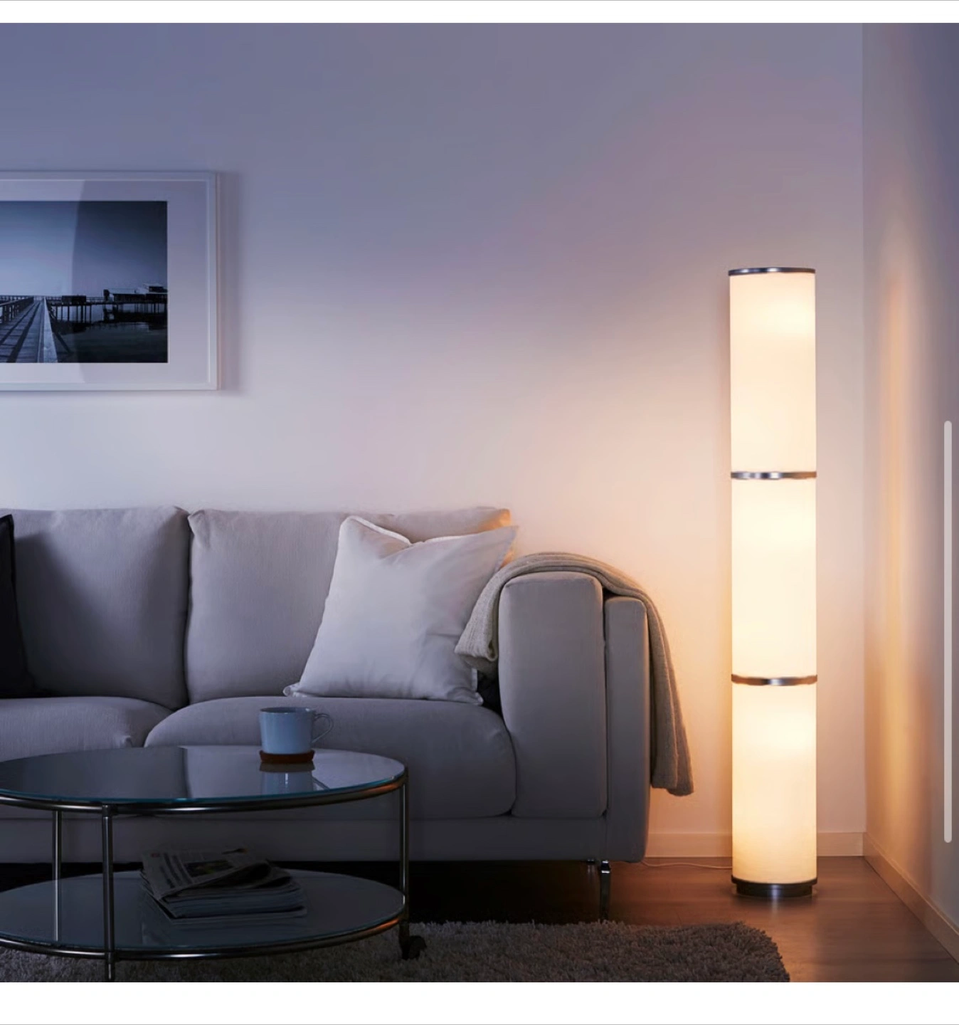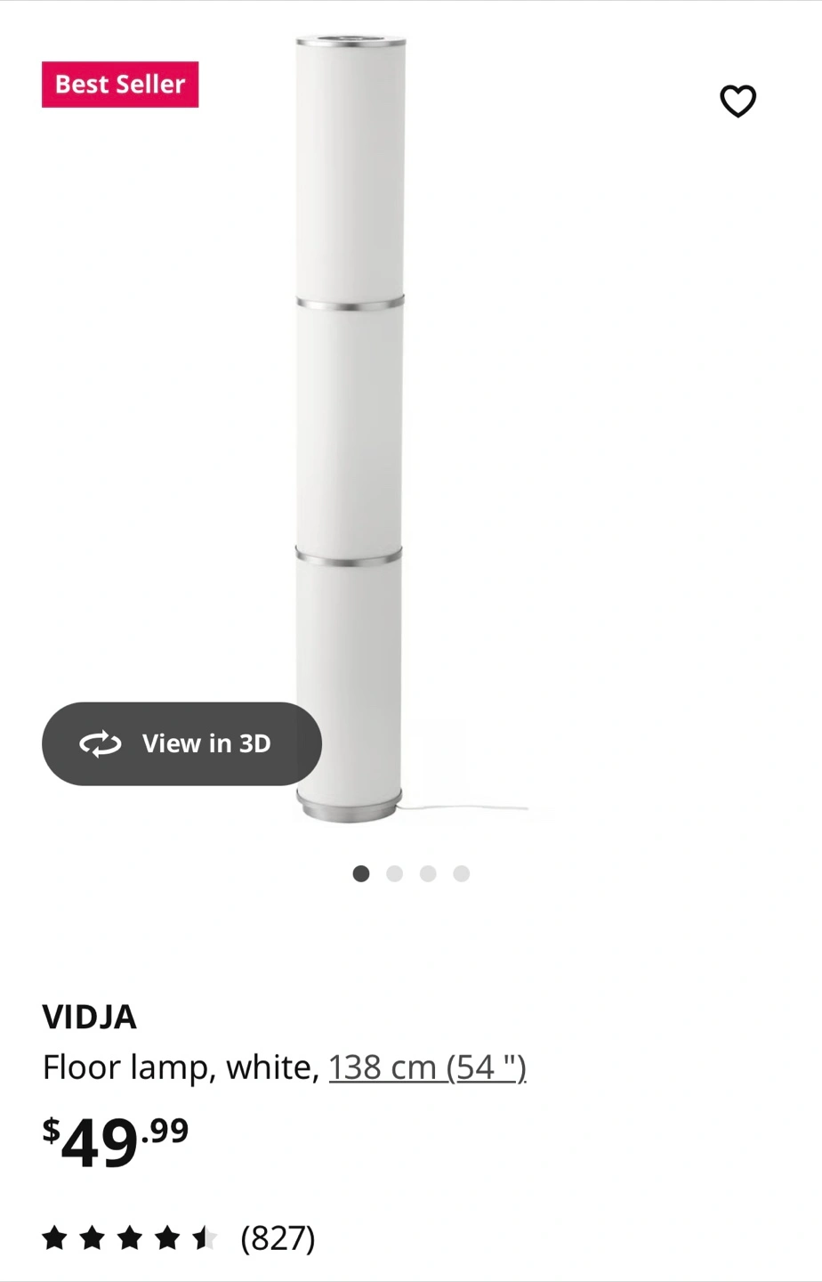 Selling a gently used IKEA Vidja floor lamp in white. It's about 54 inches tall and provides a nice ambient light. Originally bought for $49.99. Perfect for adding a soft glow to any room!