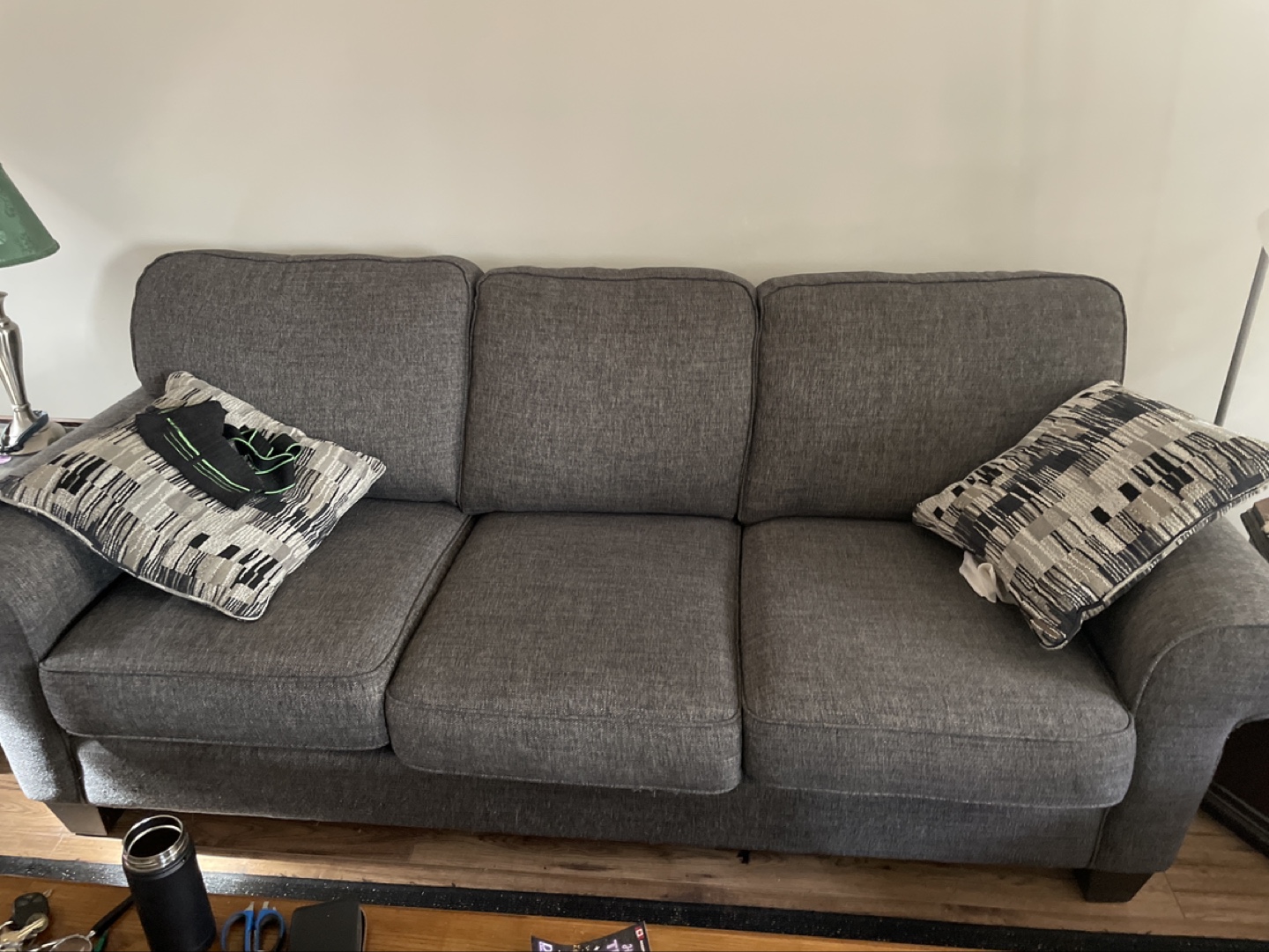 1 / 11 / 1Buy & SellGrey / blue Fabric SofaGrey / blue Fabric Sofa$250Three-seater sofa. Dark grey fabric upholstery. Includes two decorative pillows. Good condition.ConditionLike newWHERE TO MEET374 Maplegrove Ave., BradfordView MapSELLERAllenBradford13111 reviews3 chats·0 favorites·51 viewsSEND CHAT TO SELLERHi Allen! I’m interested in your listing.Hi Allen! I’m interested in your listing.Get the Karrot app to chatSign In to chat