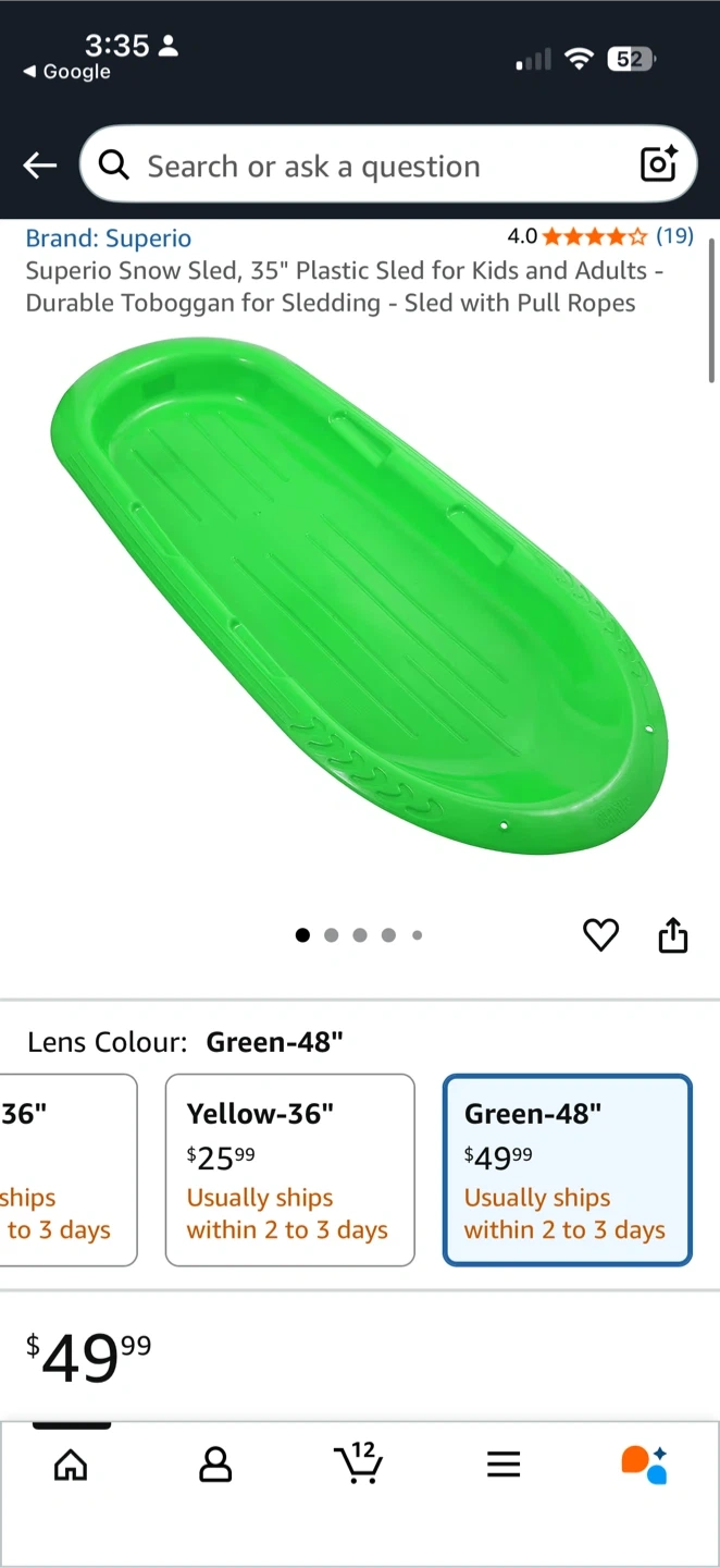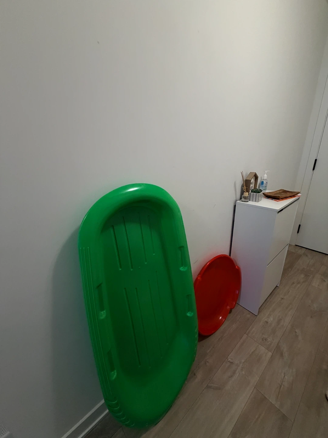 The green one is the Best Toboggan Snow Sled from Amazon selling at 49.99cad each plus tax: