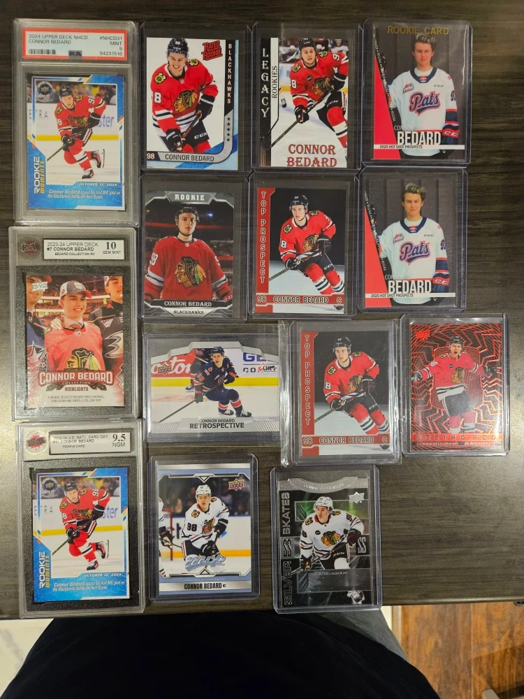 Selling a collection of Connor Bedard rookie cards. Various cards (psa/ksa) from Upper Deck and other brands. Great for any hockey fan or collector! Etransfer.