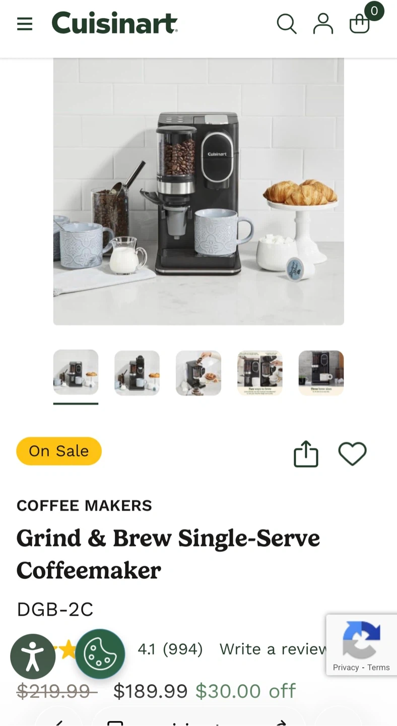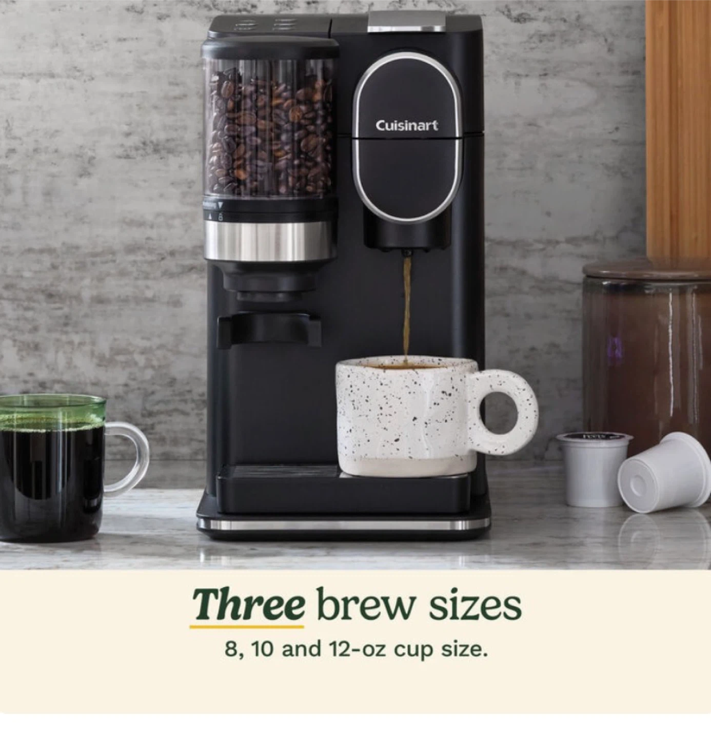 This Cuisinart Grind & Brew coffee maker offers convenience and fresh coffee. It grinds beans and brews a single cup, with options for 8, 10, and 12-oz sizes. It's perfect for a quick, fresh coffee on busy mornings!