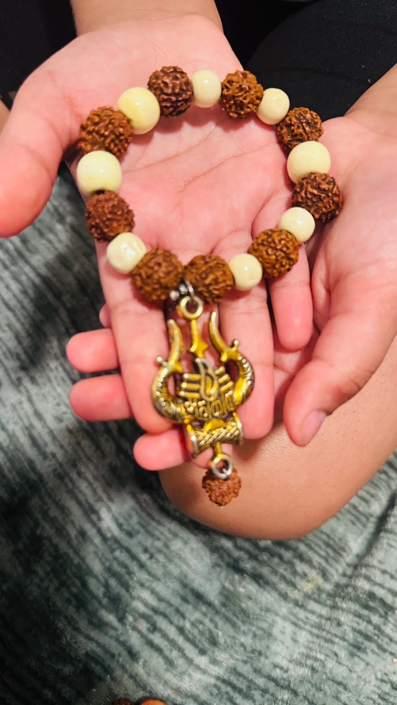 Selling a unique handmade bracelet featuring a mix of wooden and textured beads. It has a neutral colour palette that would go with many outfits. It also has a pendant with a unique design.