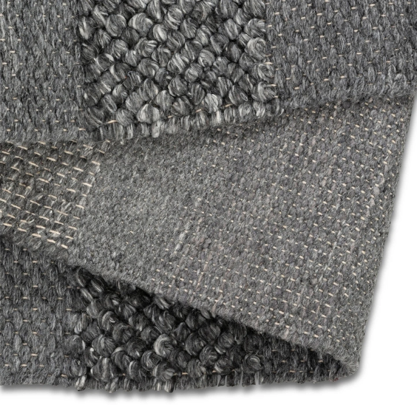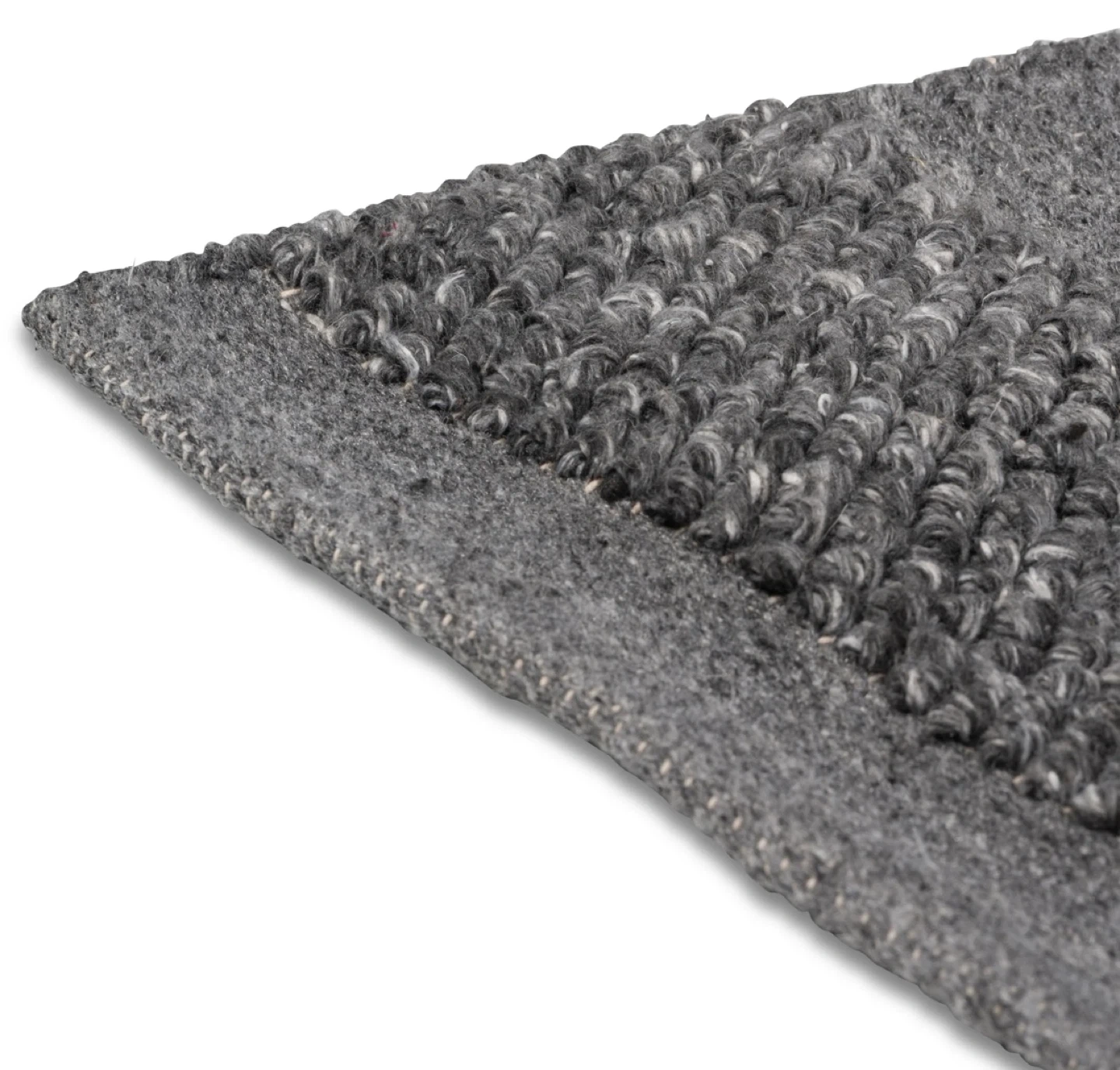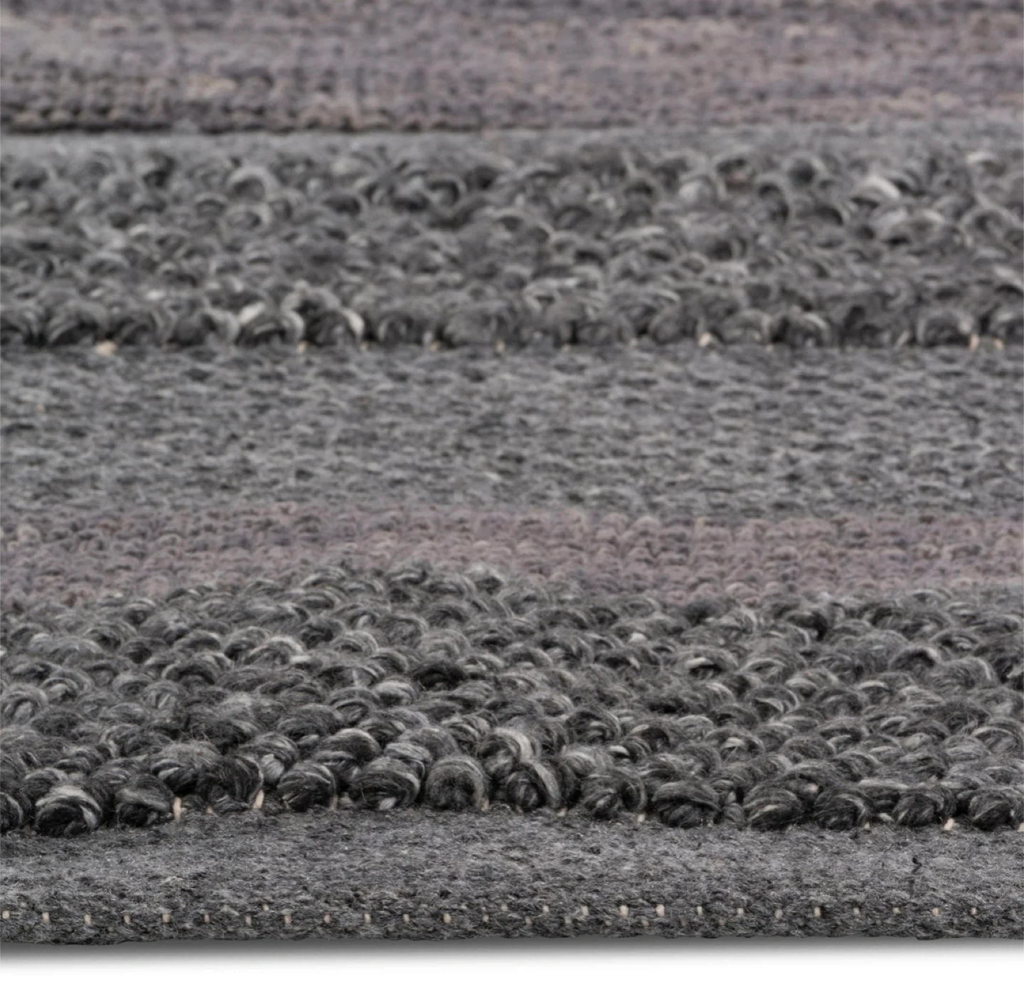 Handwoven by skilled weavers, the charcoal area rug provides a rustic yet modern ambience to your home. Curated with New Zealand wool, this rug provides a pleasantly firm underfoot feel. Its textured high-low pile adds another aspect of visual weight to your décor. Offered in a palette of fade-resistant subdued hues, its complexion is a great fit for many styles.”