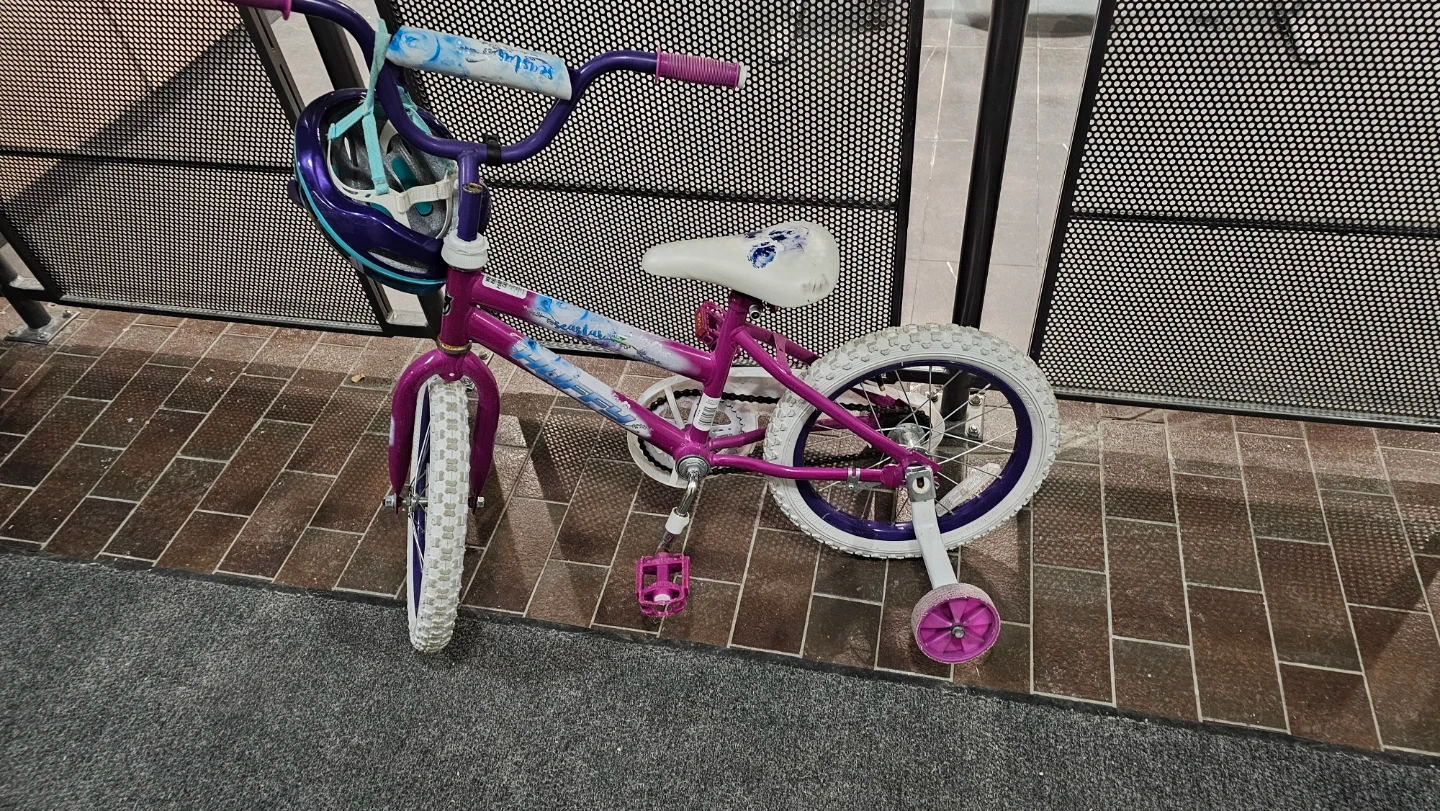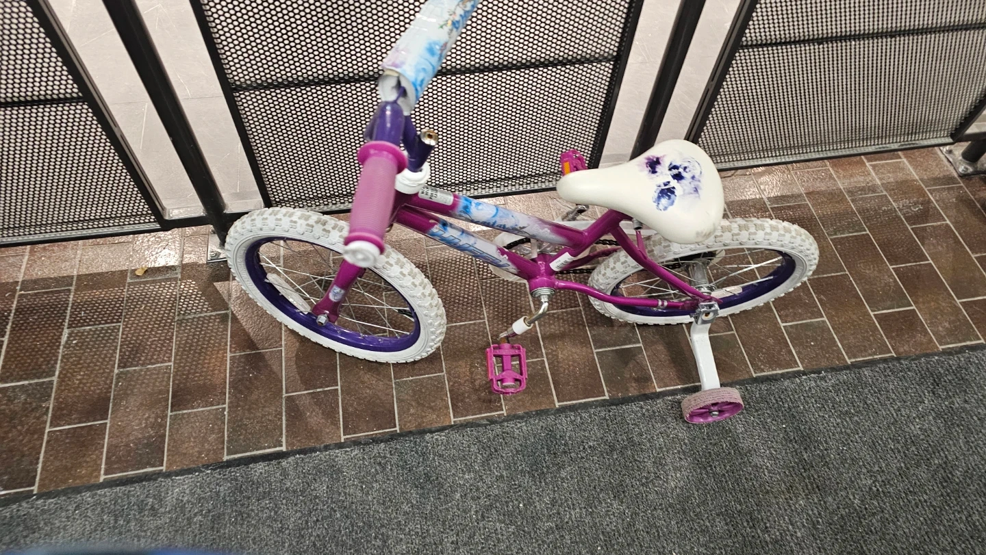 Girls' Purple and White Bicycle with Training Wheels