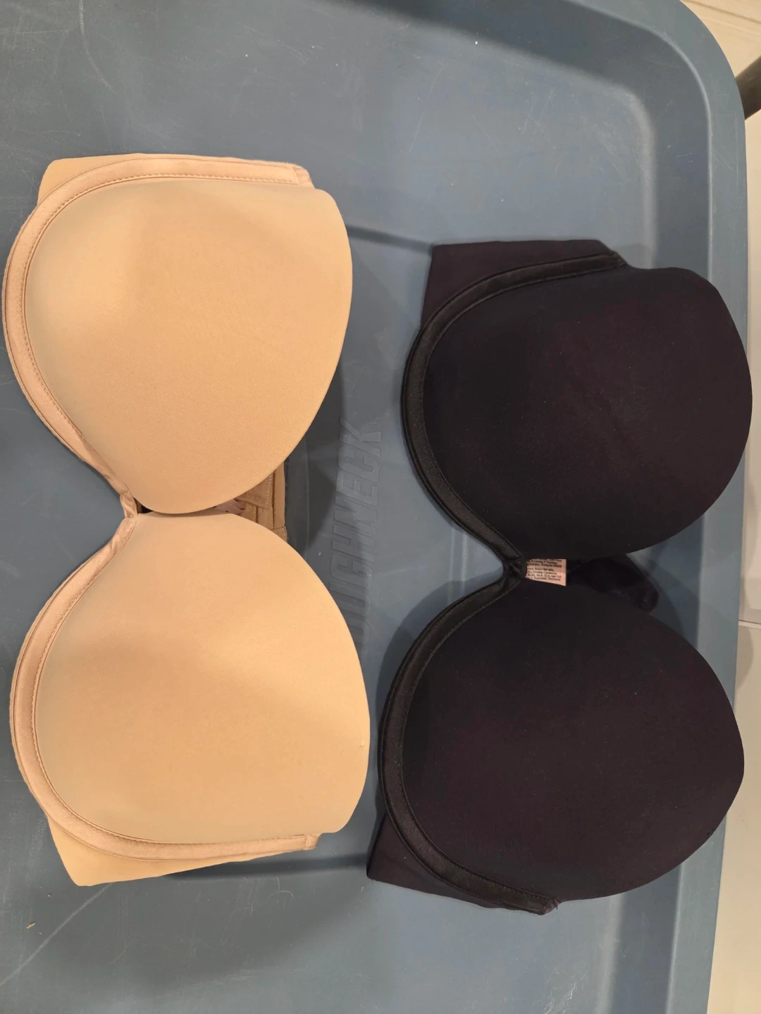 Two strapless push-up bras from La Senza. Includes one black and one nude option. Underwire support and adjustable straps are included for versatility. Gently worn.