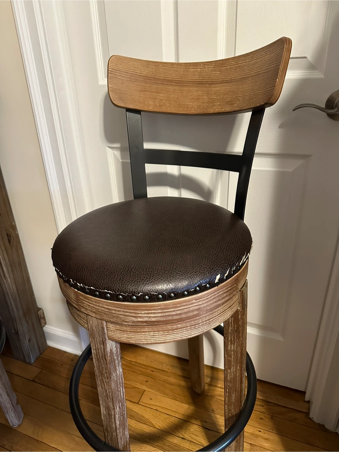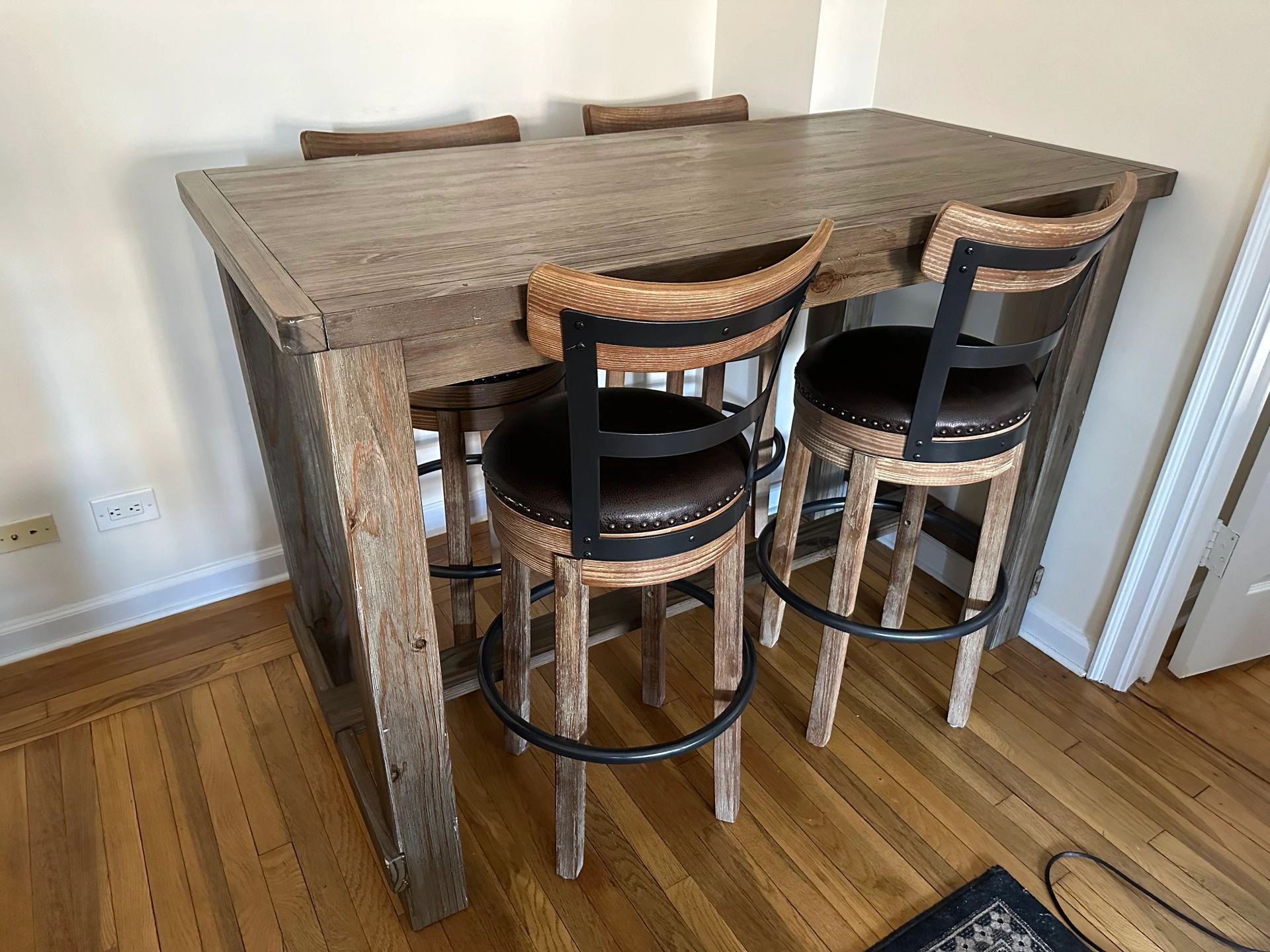 Guadeloupe Bar Height Wood Table and 4 Spinning Chairs