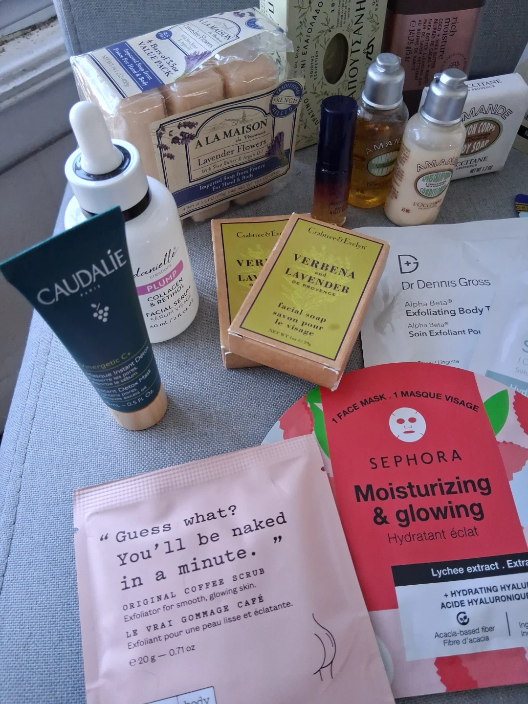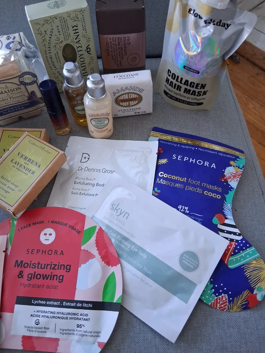 Bundle! A collection of skincare and beauty items including face masks, soaps, and lotions. Items from brands like Caudalie, Sephora, Dr. Dennis Gross, and L'Occitane are included. Great for trying out new products! Take em all for $25, or DM for specific products only for a different bundle ππ¬