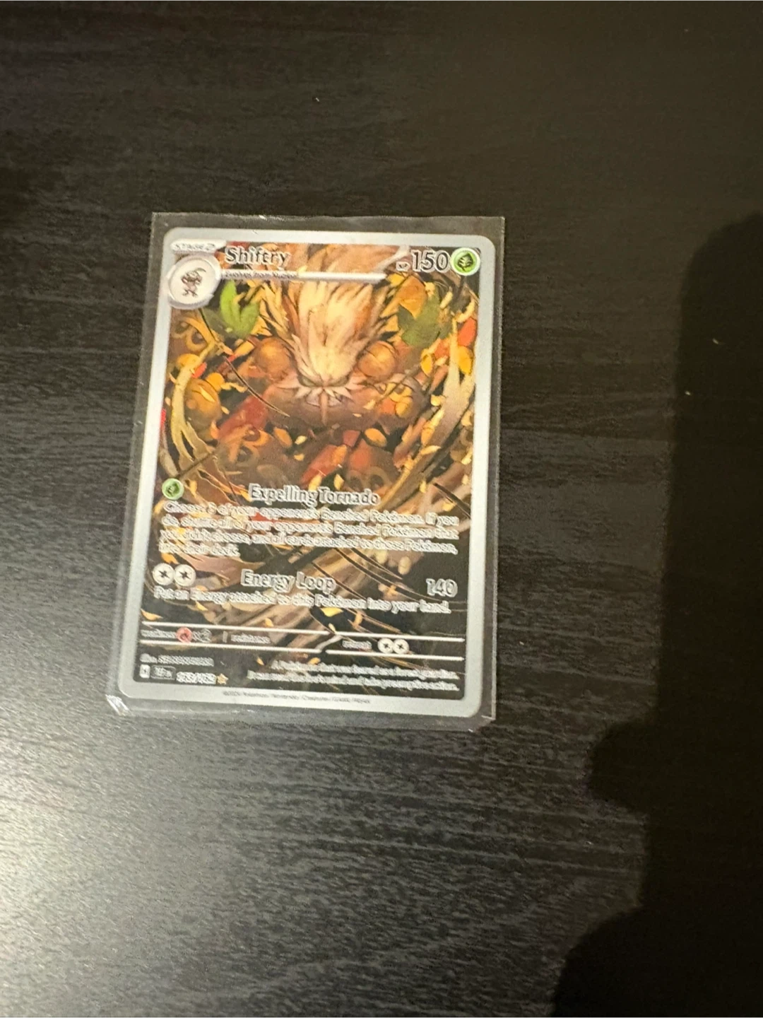 This is a Shiftery Pokemon trading card. It features 'Expelling tornado' as its attack and 'Energy Loop' with 140 damage. It's a great addition for any Pokemon collector! And no delivery’s you have to come pick it up or we meet somewhere.