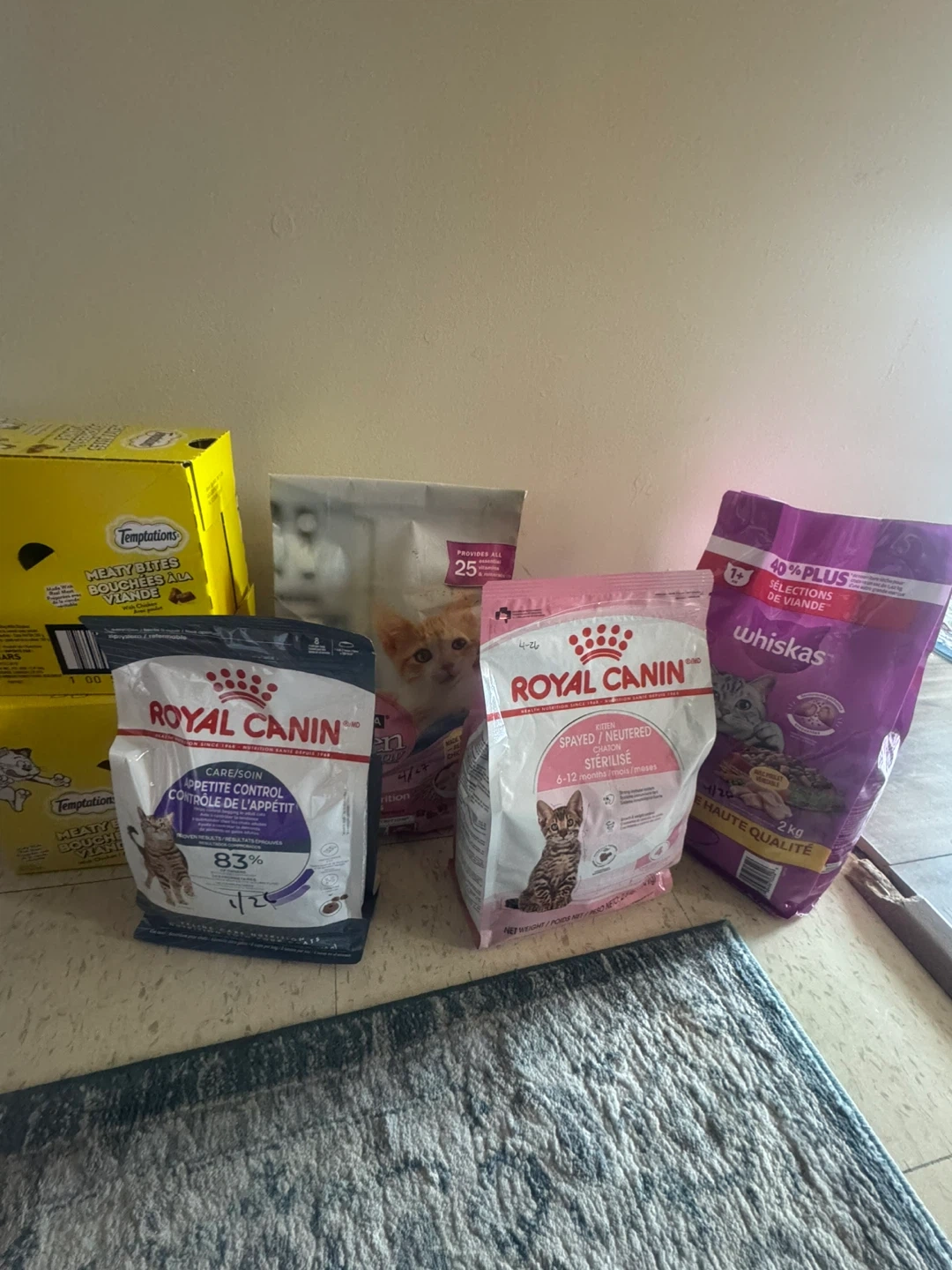 This is Royal Canin Kitten food, specifically for spayed/neutered cats aged 6-12 months. It provides 40% more meat selections. Also includes Temptations Meaty Bites and Whiskas cat food selections.