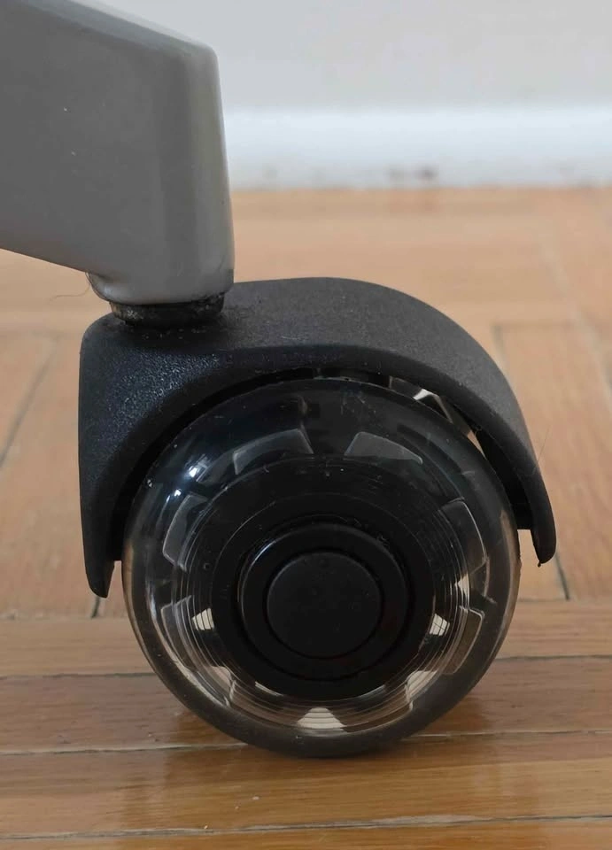 The casters have been upgraded with rollerblade very smooth quiet casters which rotating very nice and seamless, the chair makes no noise, all functional parts are working, everything has been cleaned up and the only scruff is at the bottom of the upholster as it's not made of grain leather like the seat (see images)