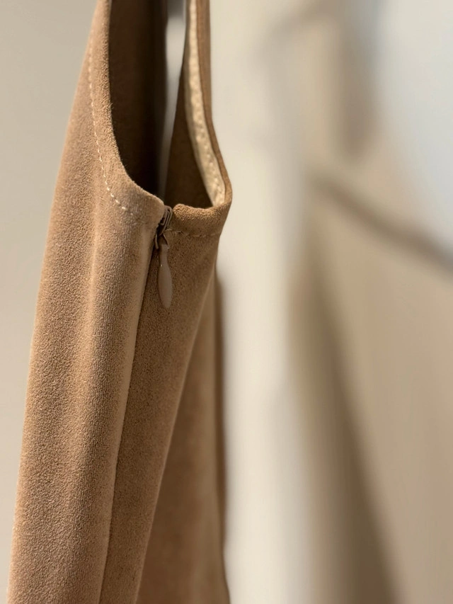 This is a Wilfred dress made of a soft, tan, suede-like material, perfect for a night out! It features a V-neckline , hugging your curves in all the right places. This dress has been worn but is still in great condition, ready for its next adventure. Additional details: * Brand: Wilfred * Colour: Tan * Style: curvy * Neckline: V-Neck Not lined, no tags. Fits US 4-6 Originally $168.