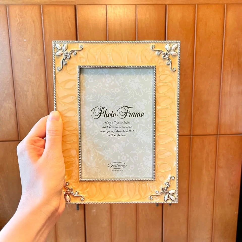 1. Single pearl and rhinestone decorated frame in a soft yellow tone, fits a 3.94”x 5.91”photo (10x15cm)