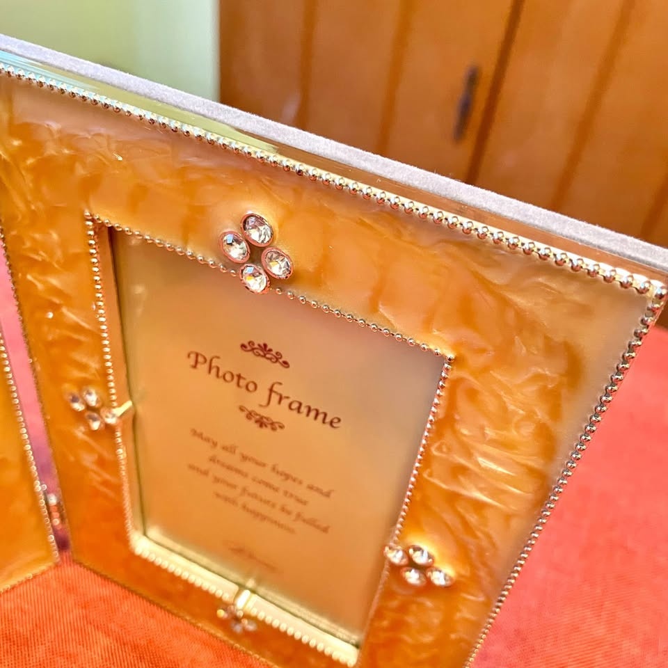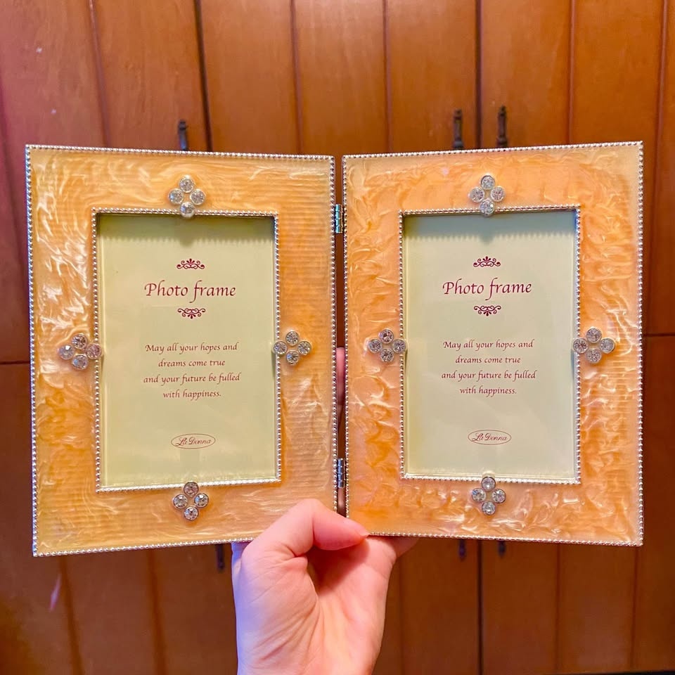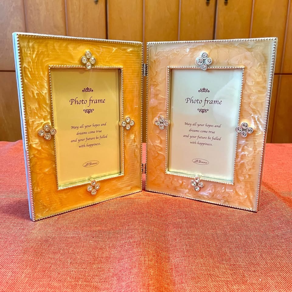 2. Double book-style frame with rhinestone accents, holds two 3.5”x 5”photos (8.9x12.7cm each)