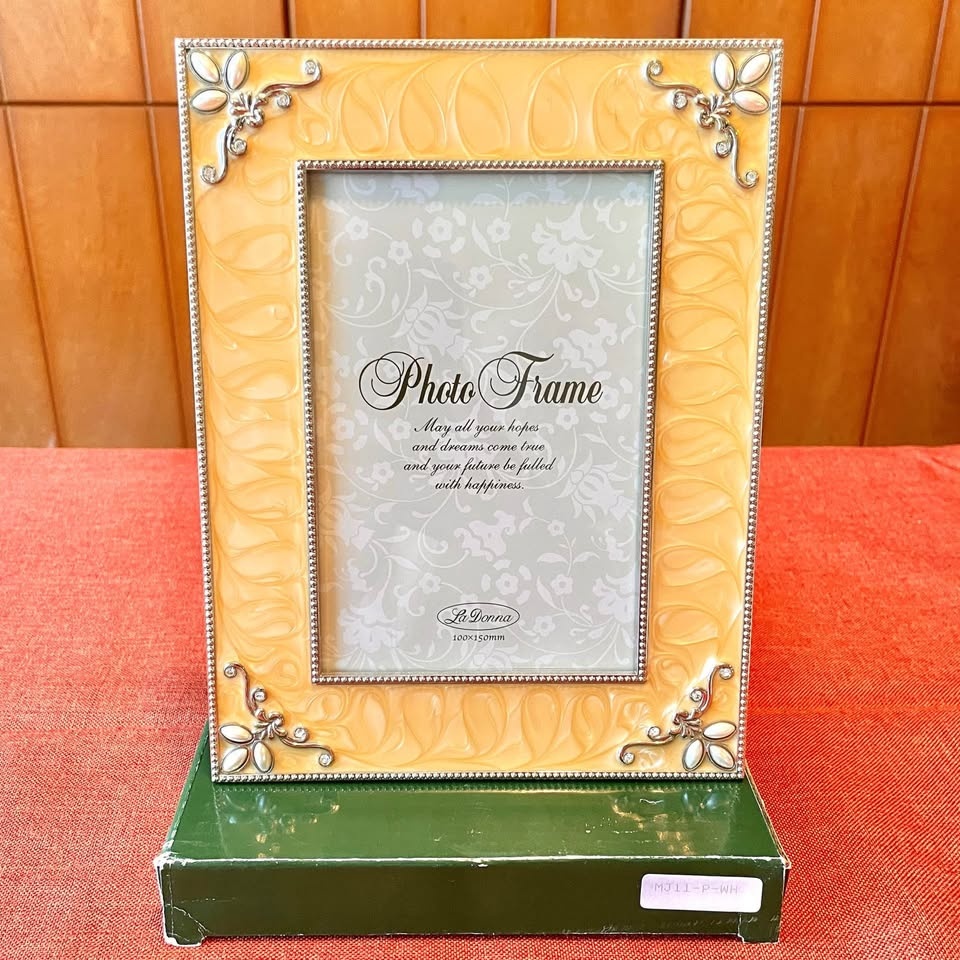 1. Single pearl and rhinestone decorated frame in a soft yellow tone, fits a 3.94”x 5.91”photo (10x15cm)