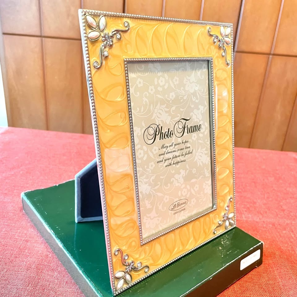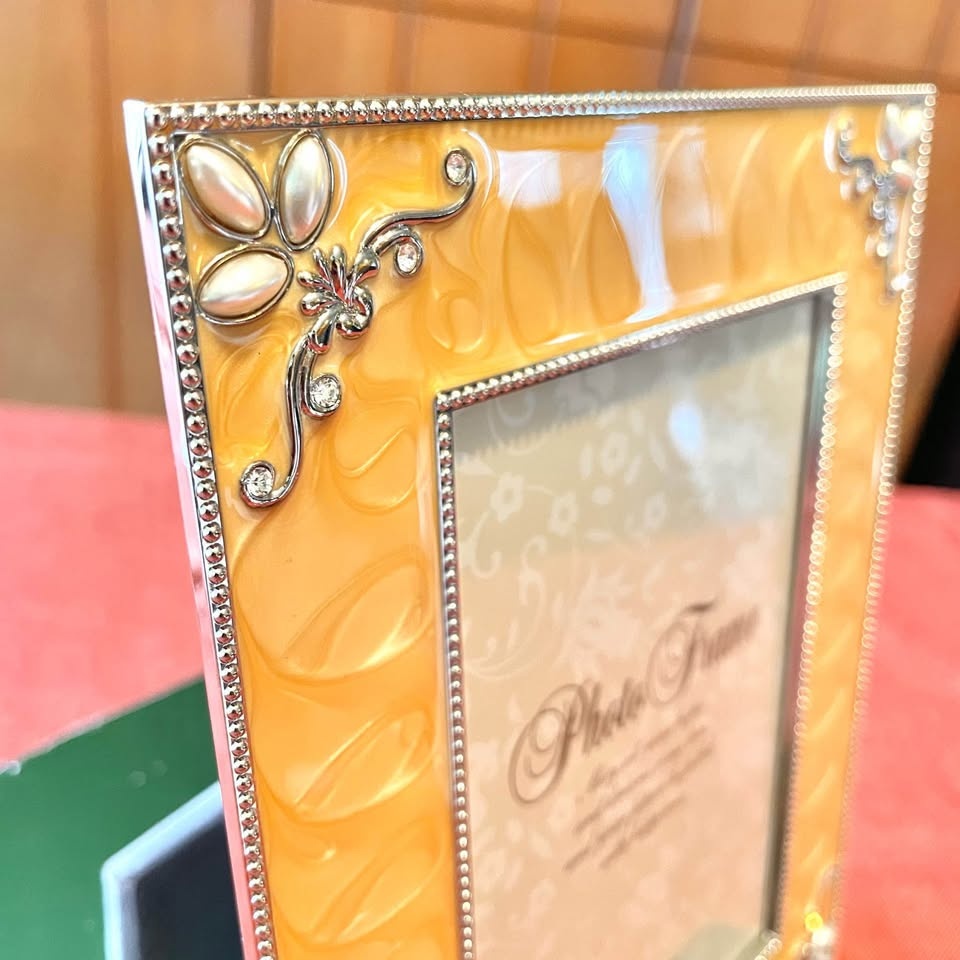 Elegant Yellow Photo Frames – Pearl & Rhinestone Accents