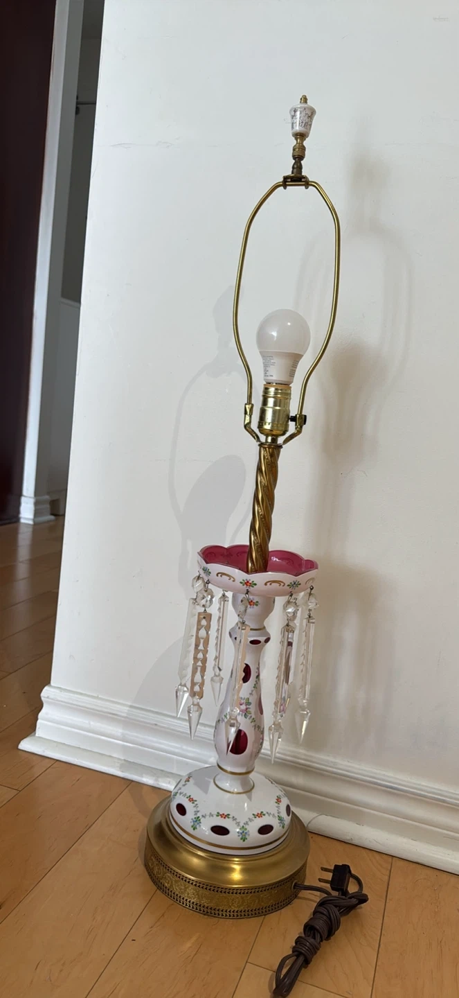 Buy & SellVintage Bohemian Czech Glass Table LampVintage Bohemian Czech Glass Table Lamp$17132" H. Very good vintage condition. Please see photos for more details.with fabric shadeWHERE TO MEETEmpressView MapSELLERAtafFinch678 reviews0 chats·0 favorites·48 viewsSEND CHAT TO SELLERHi Ataf! I’m interested in your listing.Hi Ataf! I’m interested in your listing.Get the Karrot app to chatSign In to chat