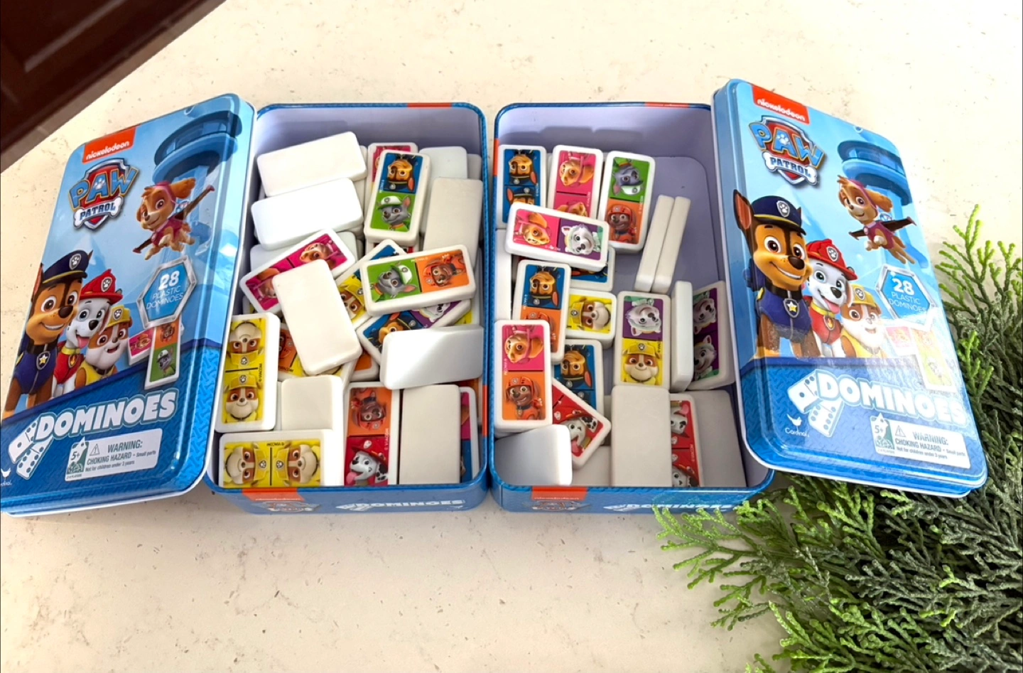 2 Sets Paw Patrol Dominoes Tin Set - 28 Plastic Dominoes