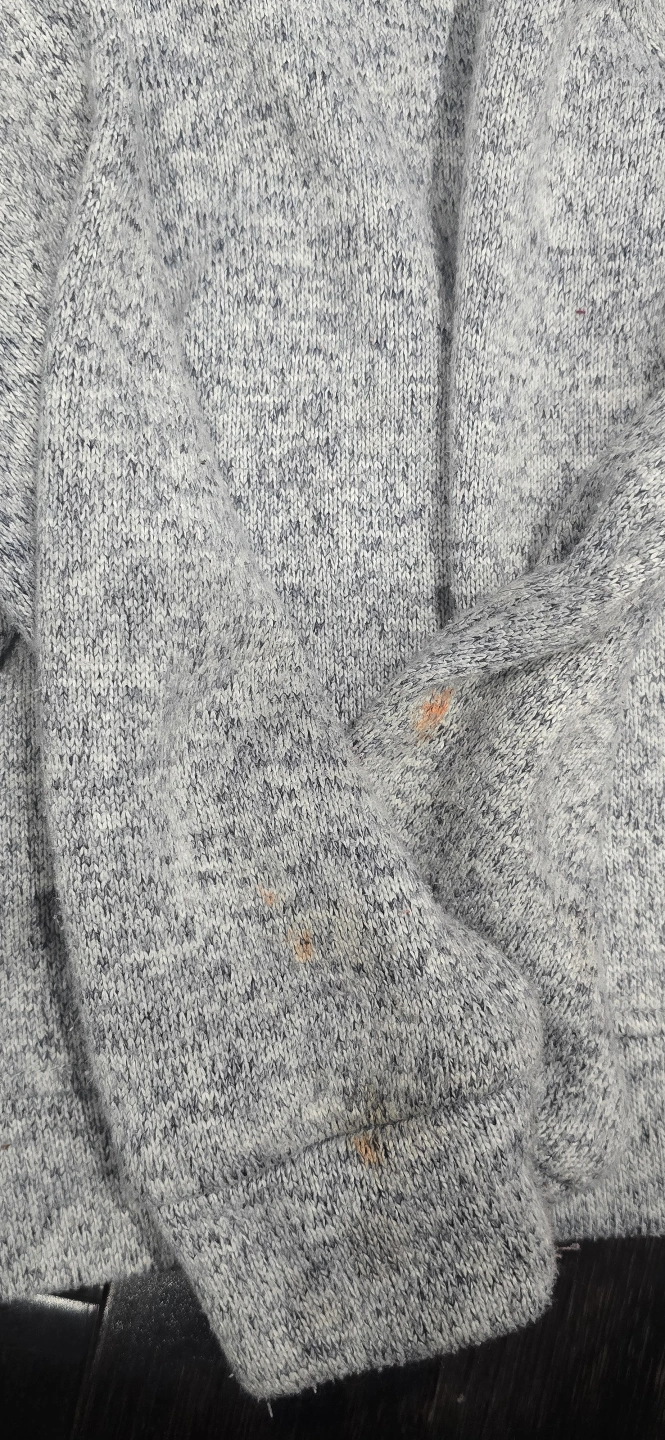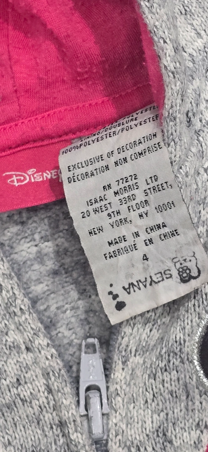 Grey hoodie. Featuring Minnie Mouse patch and star accents. Zips up the front and has a hoodie.