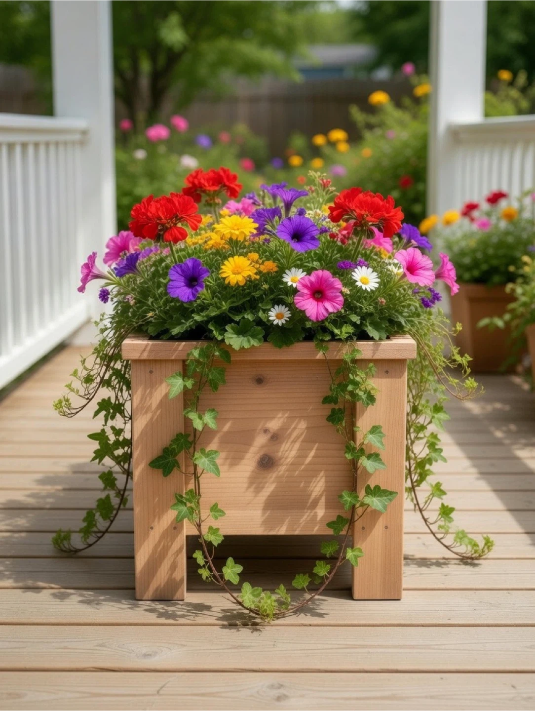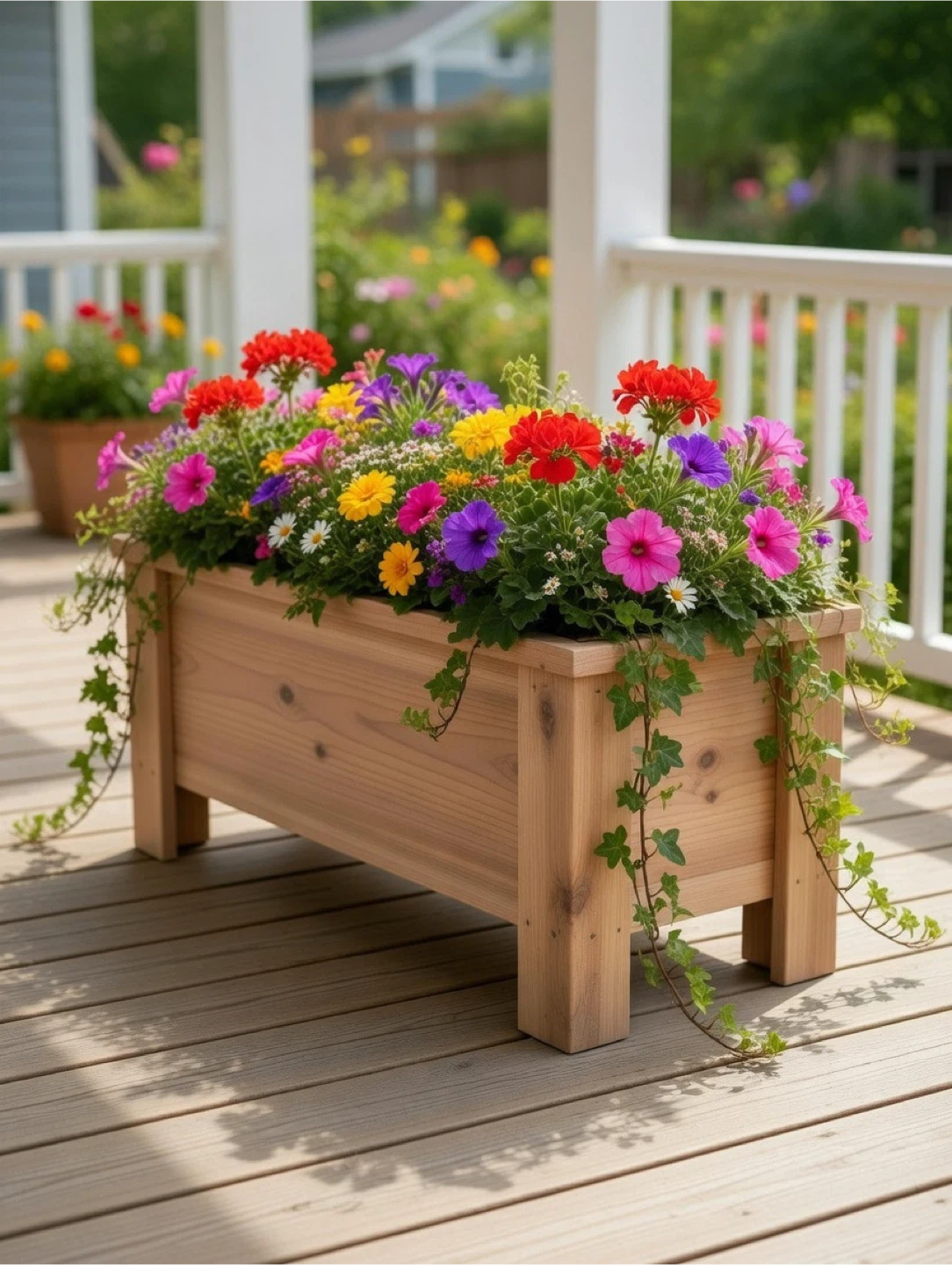 This cedar, raised planter box is perfect for your garden and includes drainage holes. Adds a lovely touch to any patio or deck! Place flowers in them or herbs and vegetables.