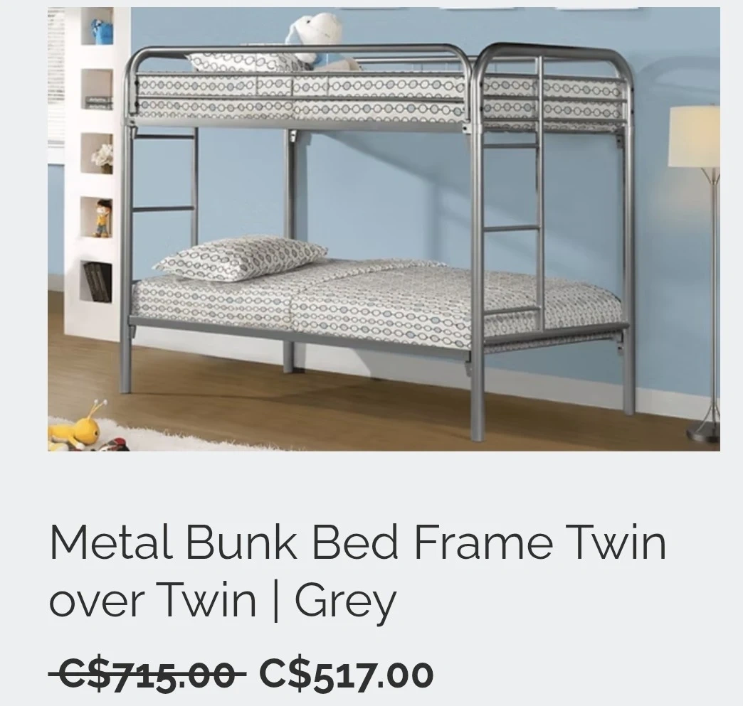 Bunk Bed Frame - Twin over Twin - Grey