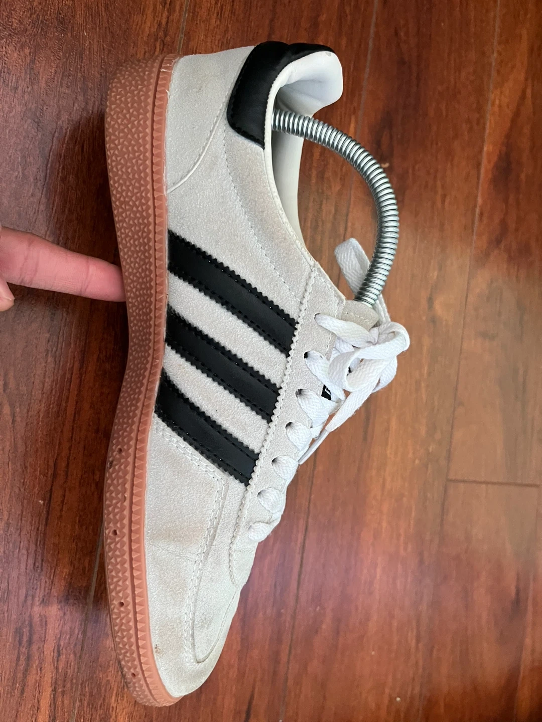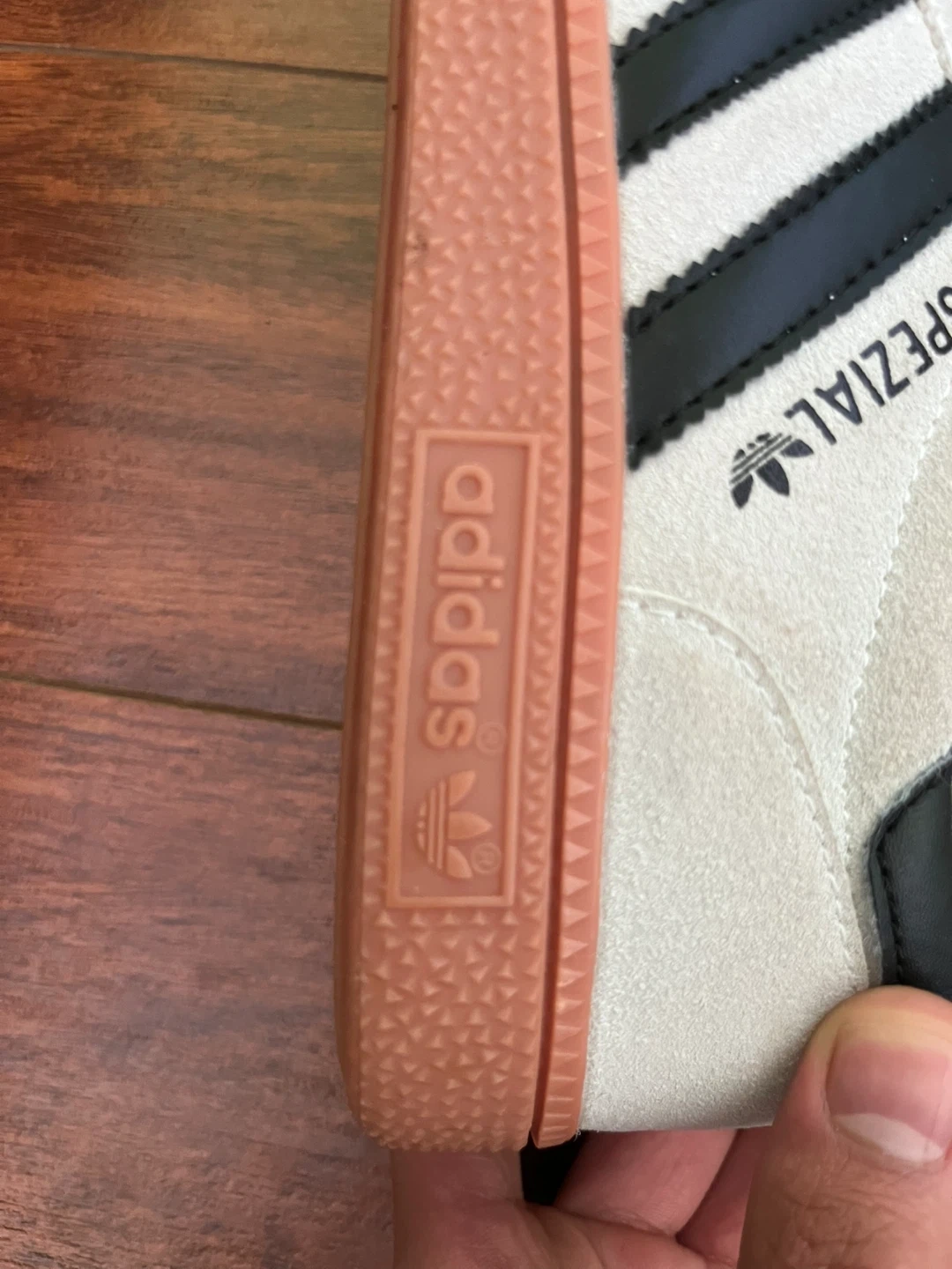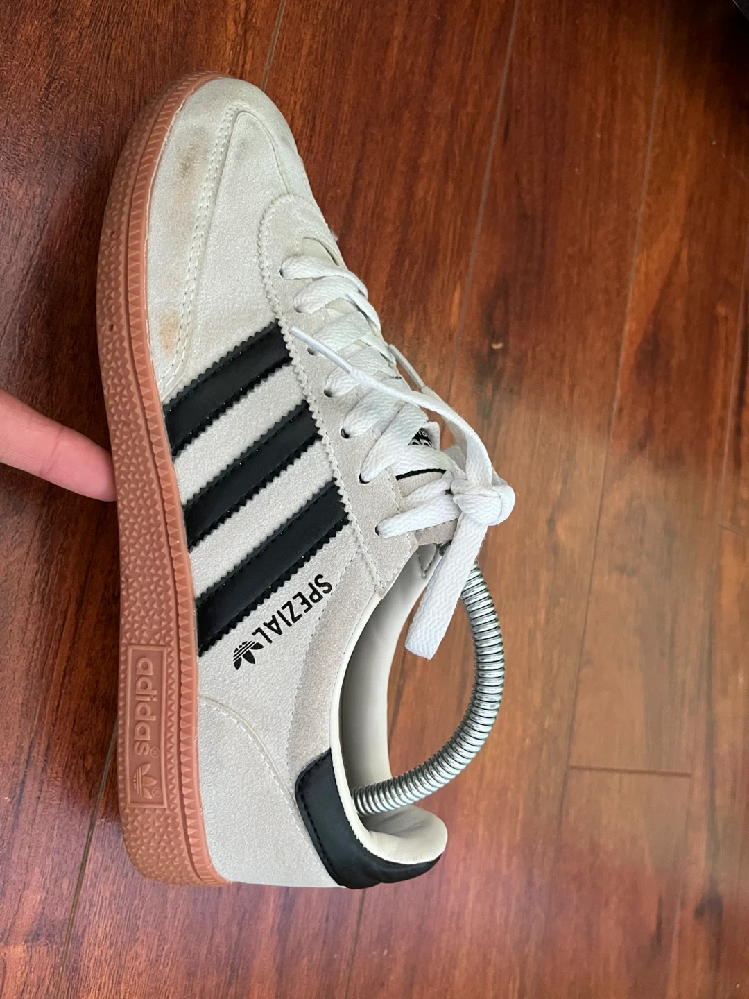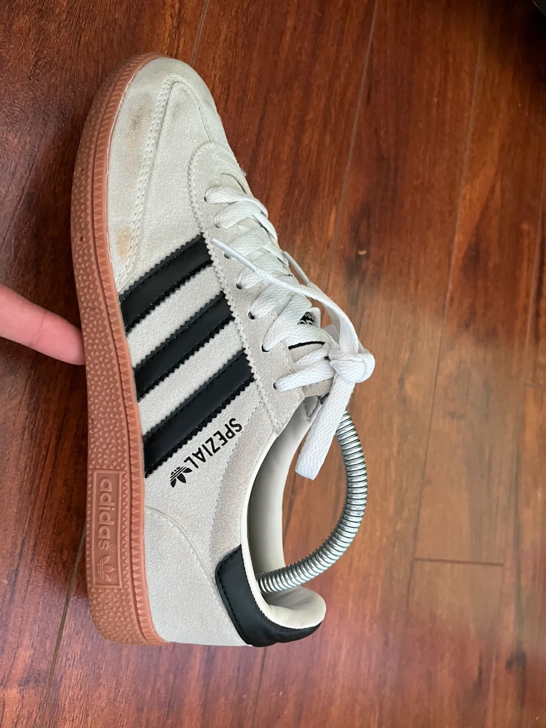 Adidas Spezial sneakers in a cream and black colourway with a gum sole. Made in Vietnam. Size US 7.5 / UK 6 / FR 39 1/3.