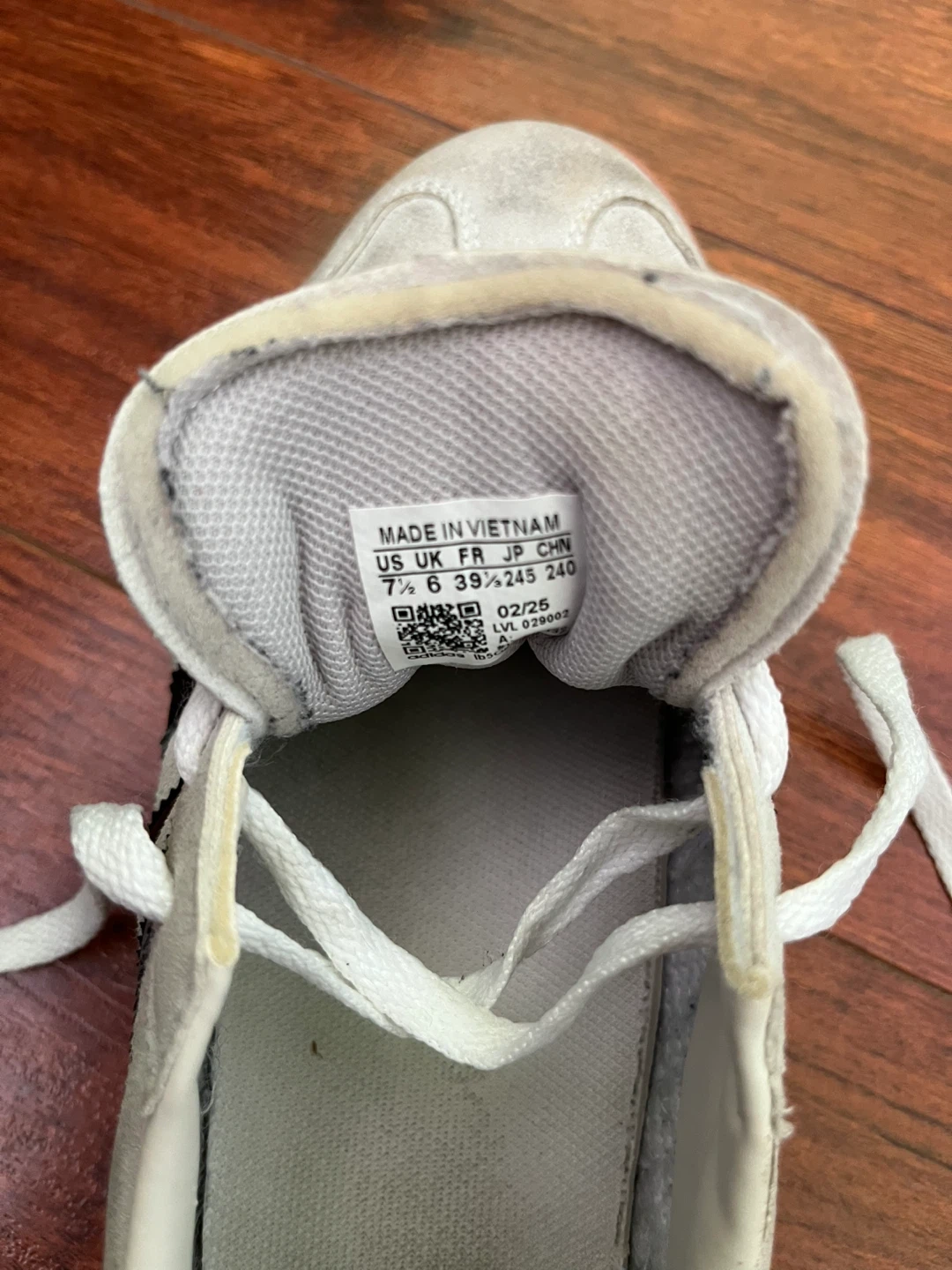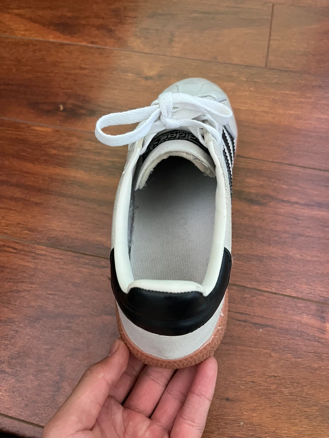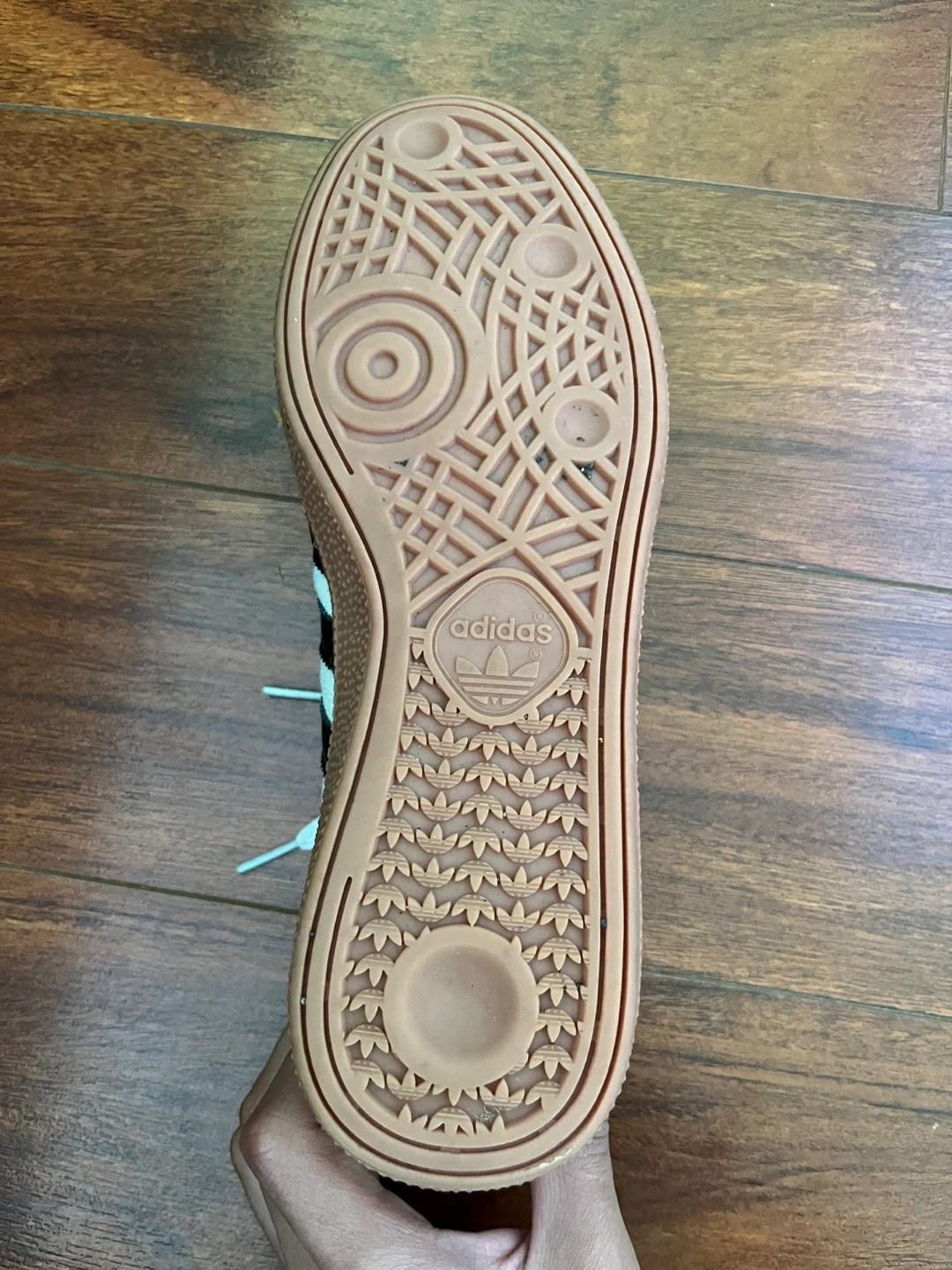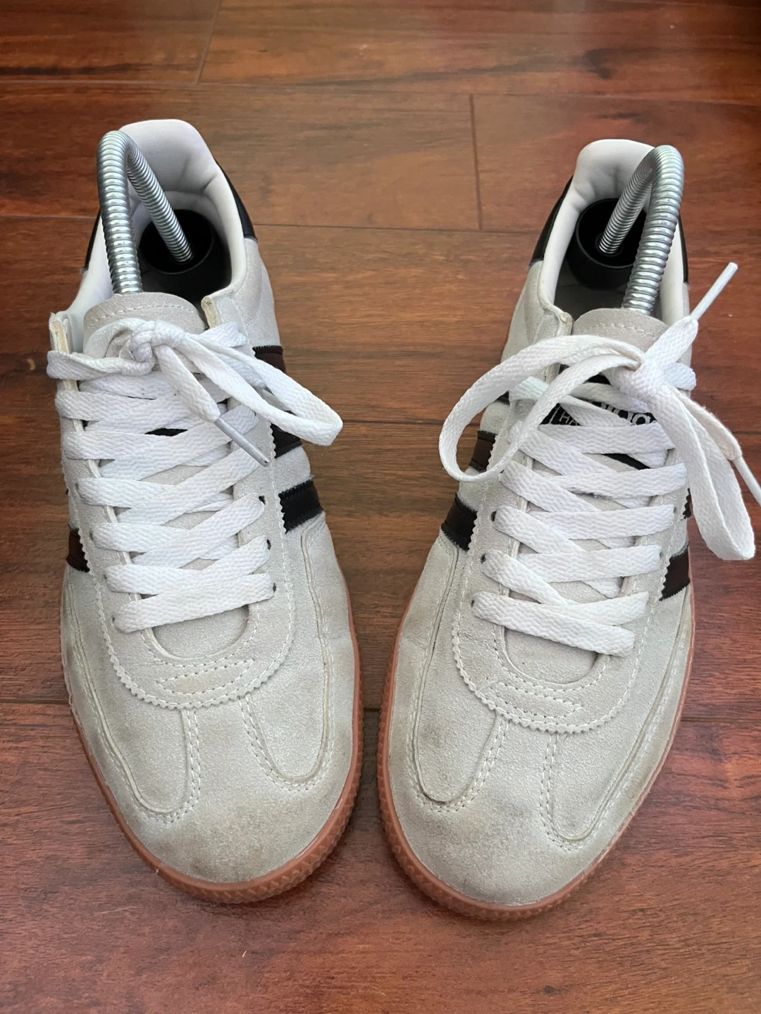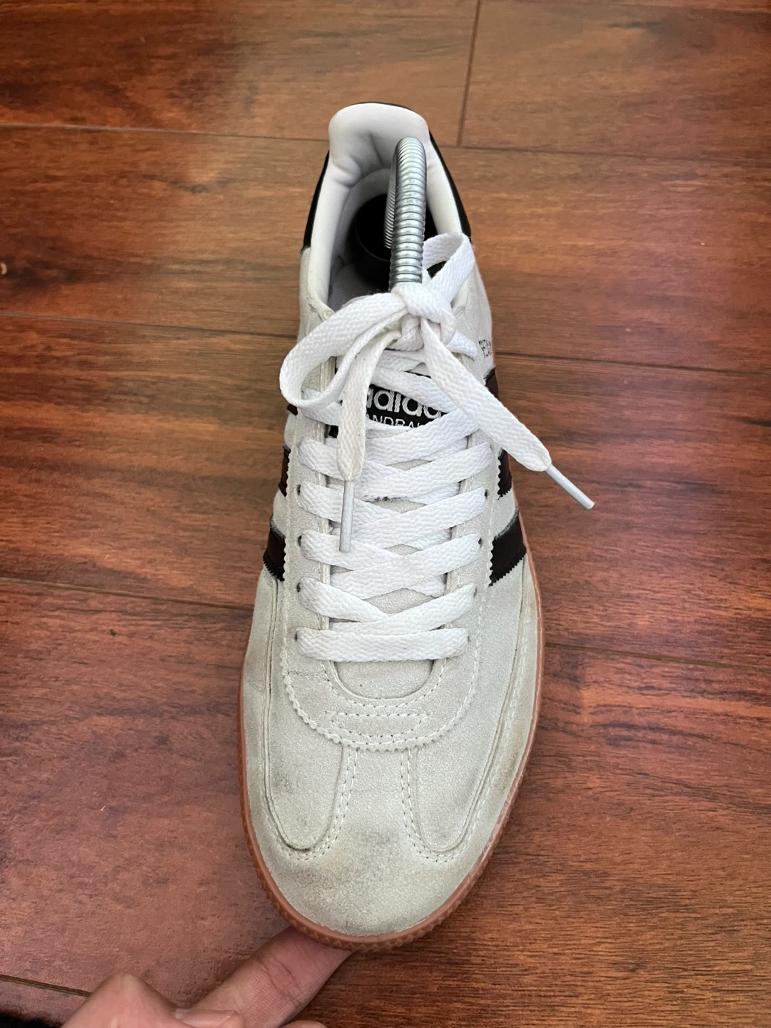 Adidas Spezial sneakers in a cream and black colourway with a gum sole. Made in Vietnam. Size US 7.5 / UK 6 / FR 39 1/3.