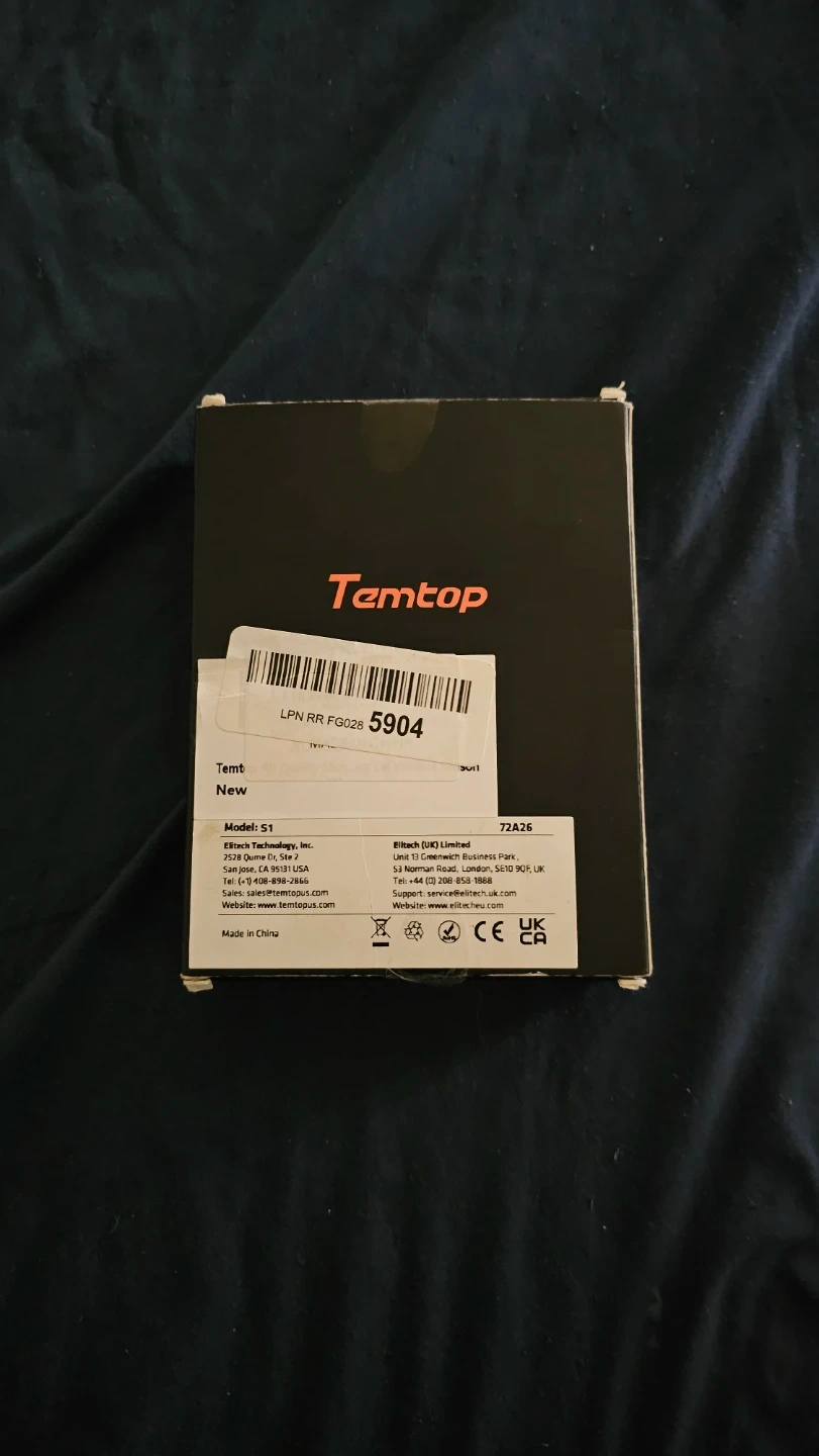 Selling a new Temtop S1 Air Meter. This device monitors PM2.5 and AQI. It comes with a digital display for readings. Useful for checking indoor air quality. Box is a little damaged on front but brand new otherwise.
