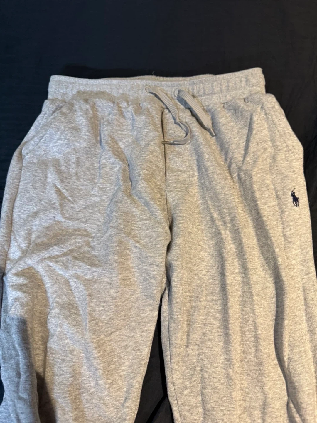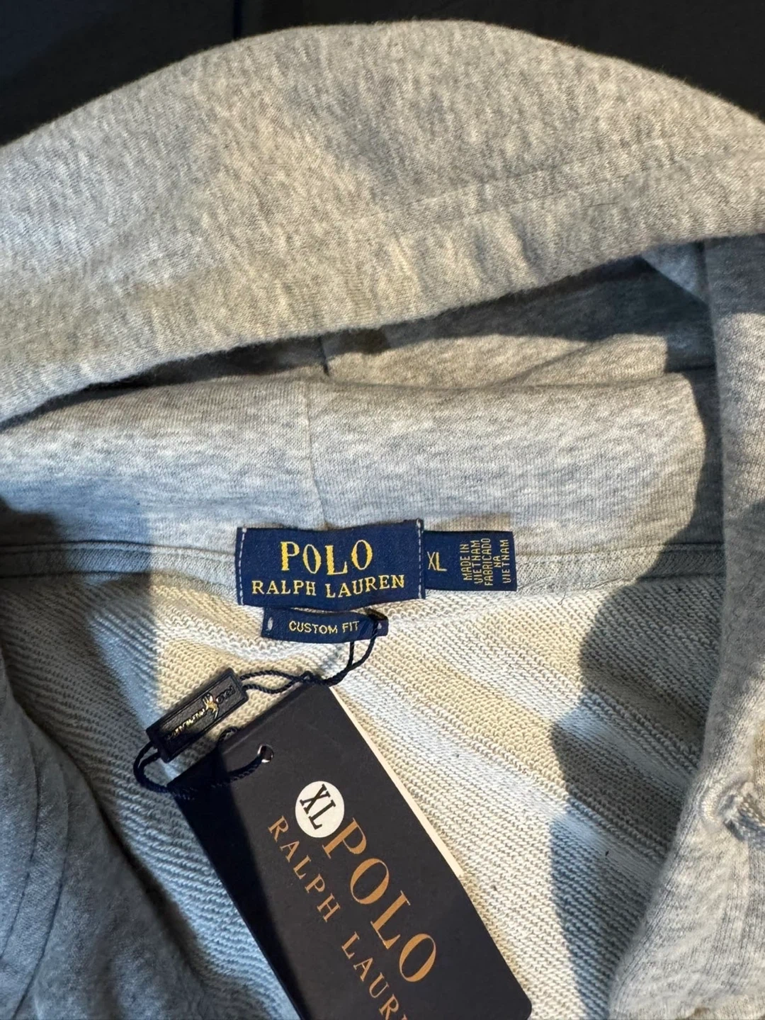 Grey Polo Ralph Lauren zip-up hoodie and sweatpants. Size XL. Custom fit. Comfortable cotton blend material. Fits like L