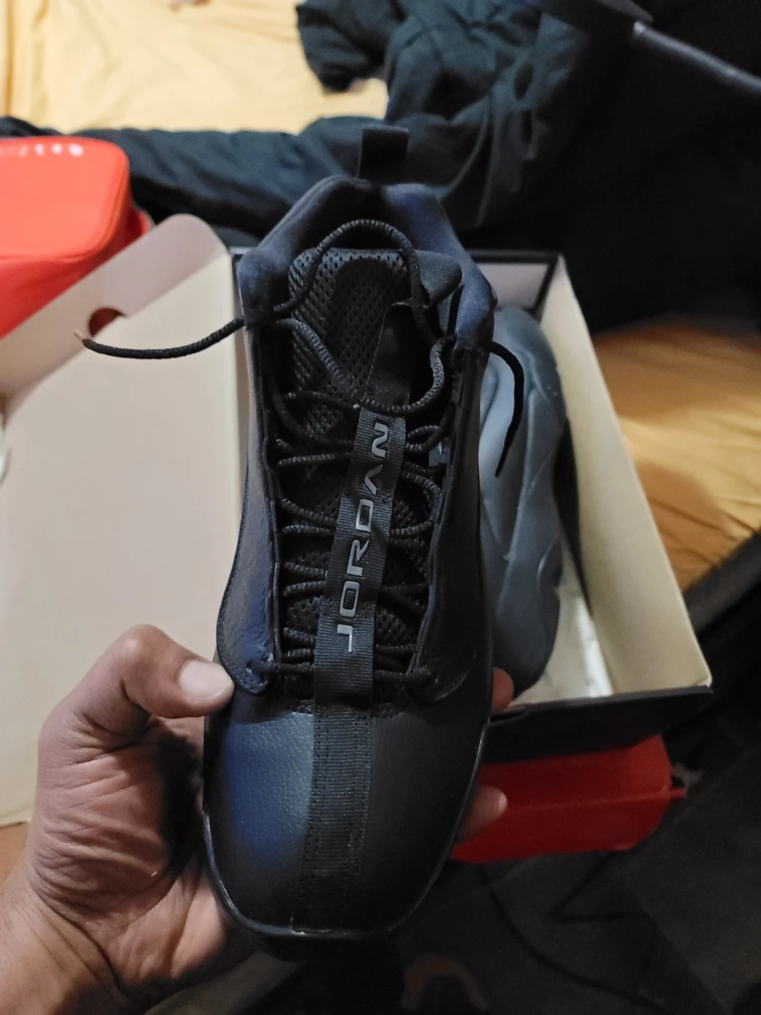 Buy & SellJordan Black SneakersJordan Black Sneakers$43Black Jordan sneakers. Lace-up closure. Comes with original box. Men's size 9.ConditionLike newSize12BrandJordanWHERE TO MEET113 police departmentView MapSELLER904194Jamaica100 reviews2 chats·2 favorites·55 viewsSEND CHAT TO SELLERHi 904194! I’m interested in your listing.Hi 904194! I’m interested in your listing.Get the Karrot app to chatSign In to chat