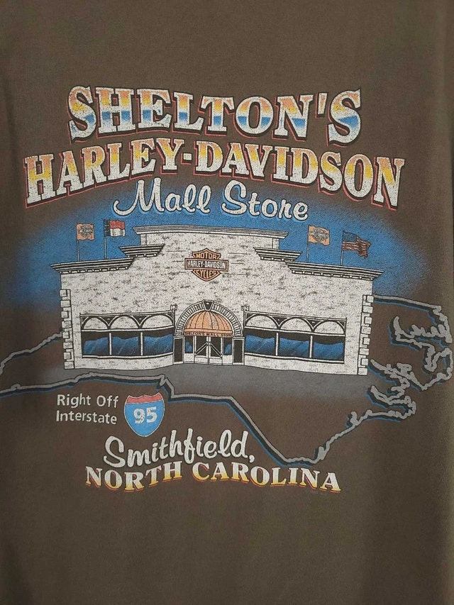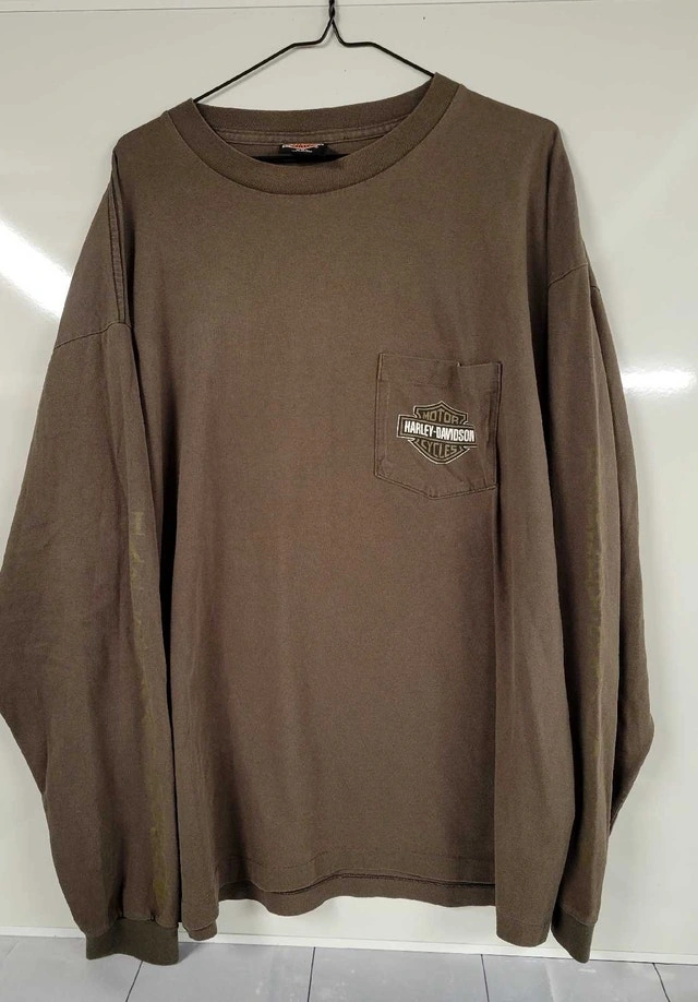 Brown Harley longsleeve with writing on the sleeve. In good condition, just a little faded. Size 2XL. Pickup in Orleans. Please check out my other 2XL listings.