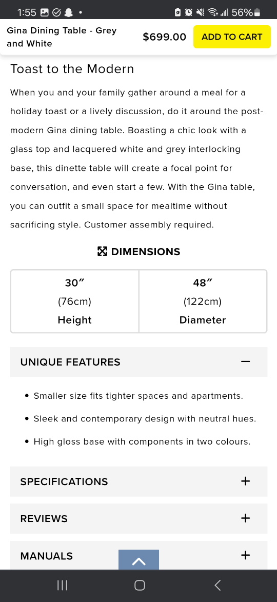 Purchased a new table to match home decor and need this one gone. It's in amazing condition, with minor scratches, if any. It's still available for purchase in store for $699. I included a picture of the table on the website.