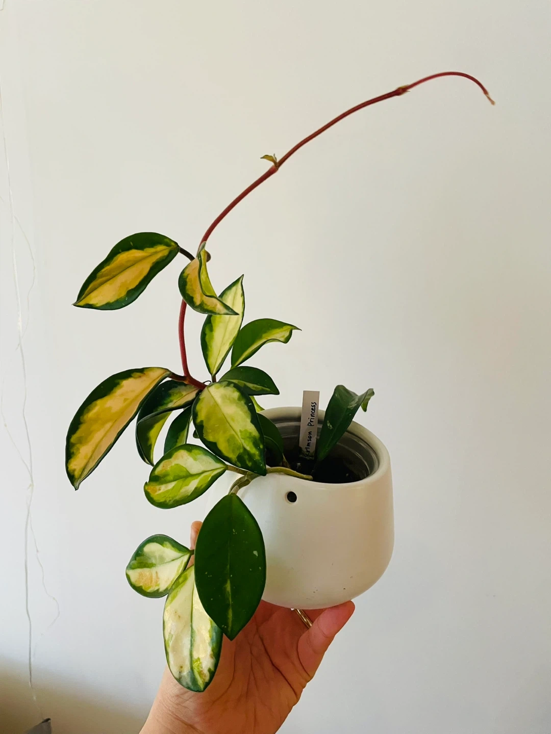 Beautiful Hoya Carnosa 'Krimson Princess' with lovely variegated leaves. It's a healthy plant ready for a new home. This vine-like plant looks great trailing from a pot!