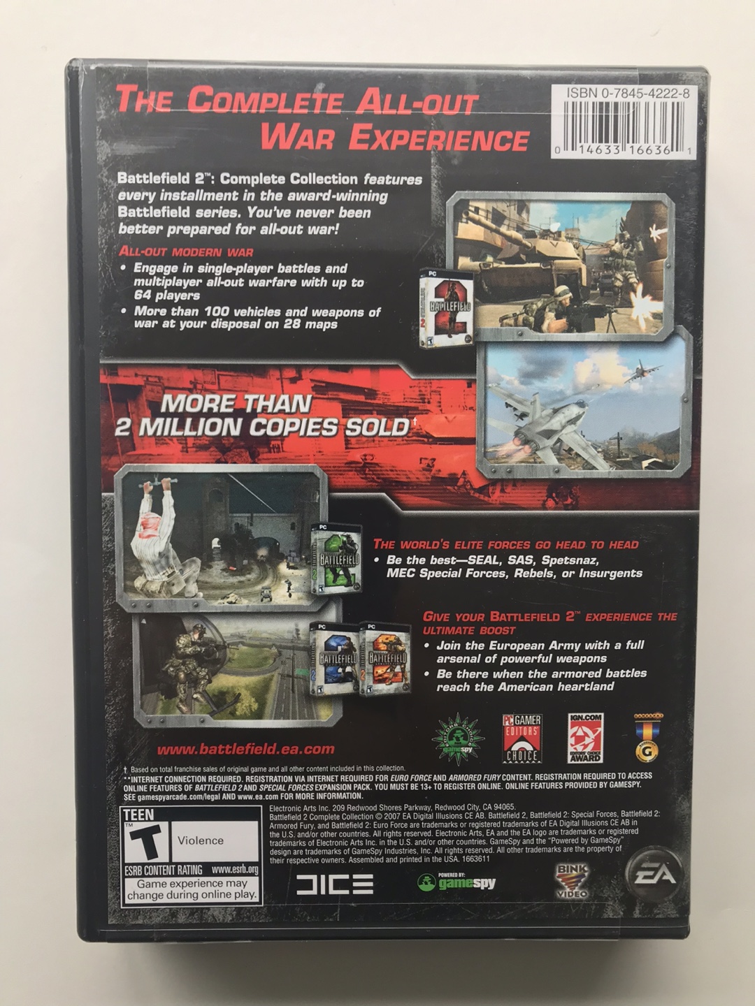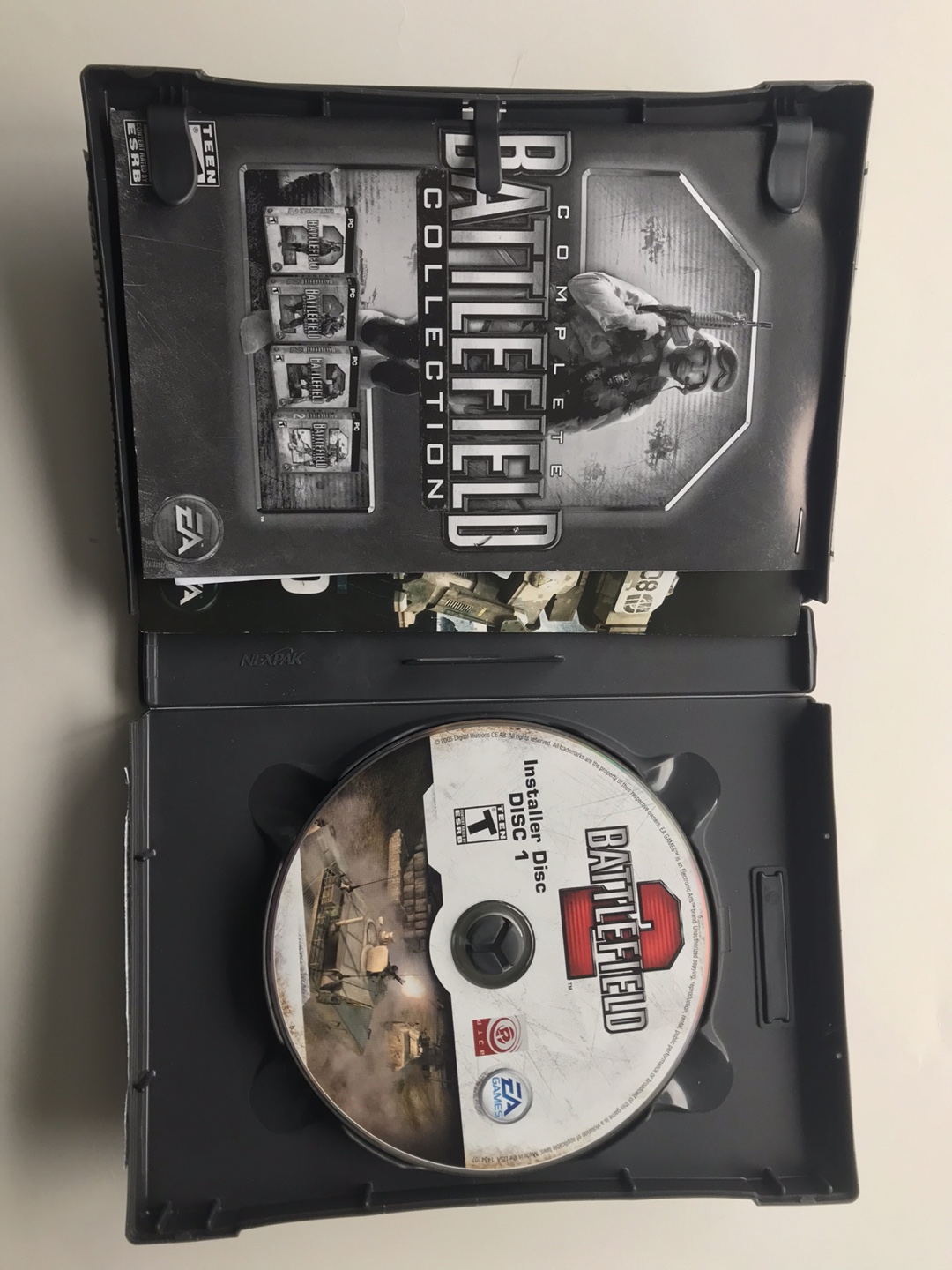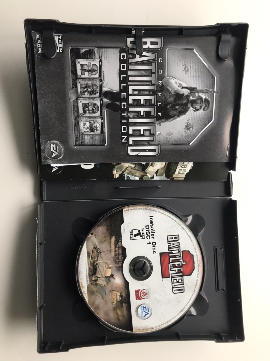 Complete Battlefield Collection for PC, includes Battlefield 1942, Battlefield 2, Battlefield 2142, Battlefield Vietnam, and Battlefield: Modern Combat. All games are on disc and come with manuals. Keys are not included.